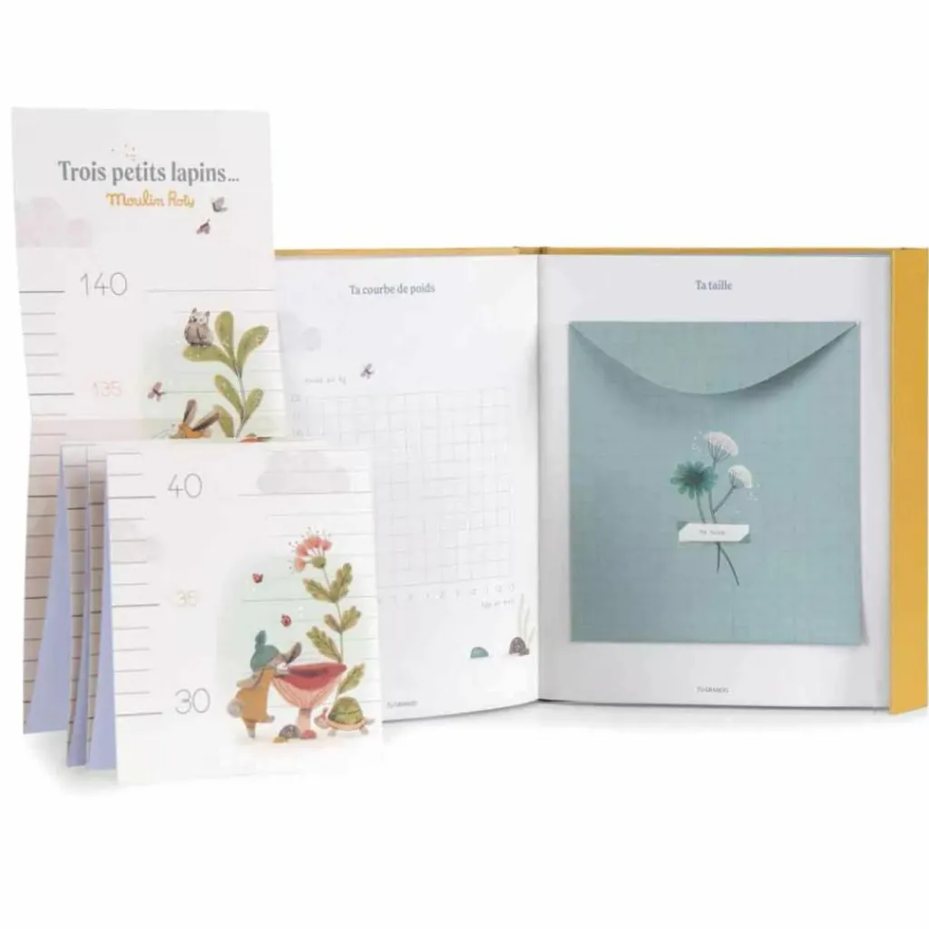 Un recueil d’instants magiques : Le livre de naissance Trois petits lapins de Moulin Roty est l’allié parfait pour graver chaque étape importante des premières années. Un incontournable pour les jeunes parents !