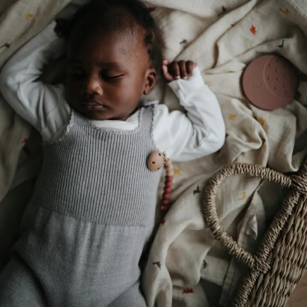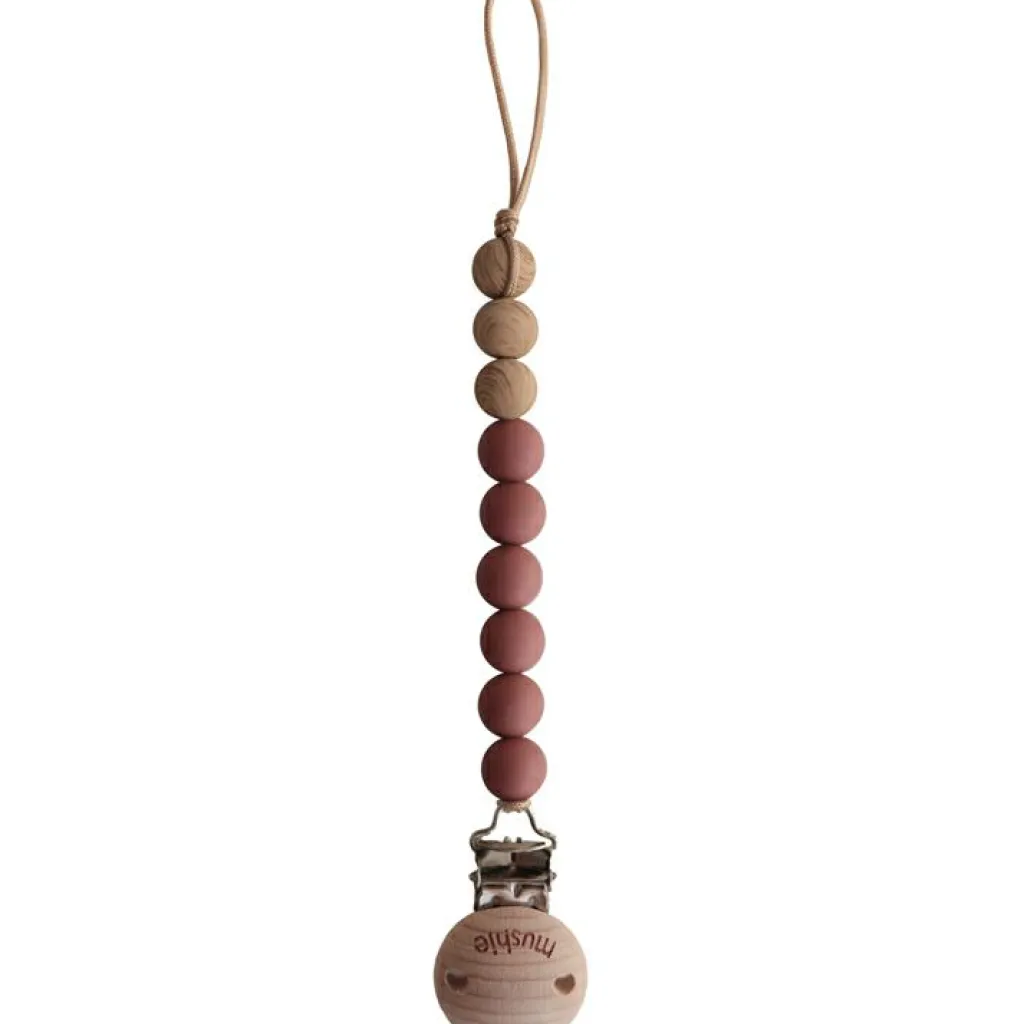 – Clip en bois et métal à accrocher aux vêtements de bébé.