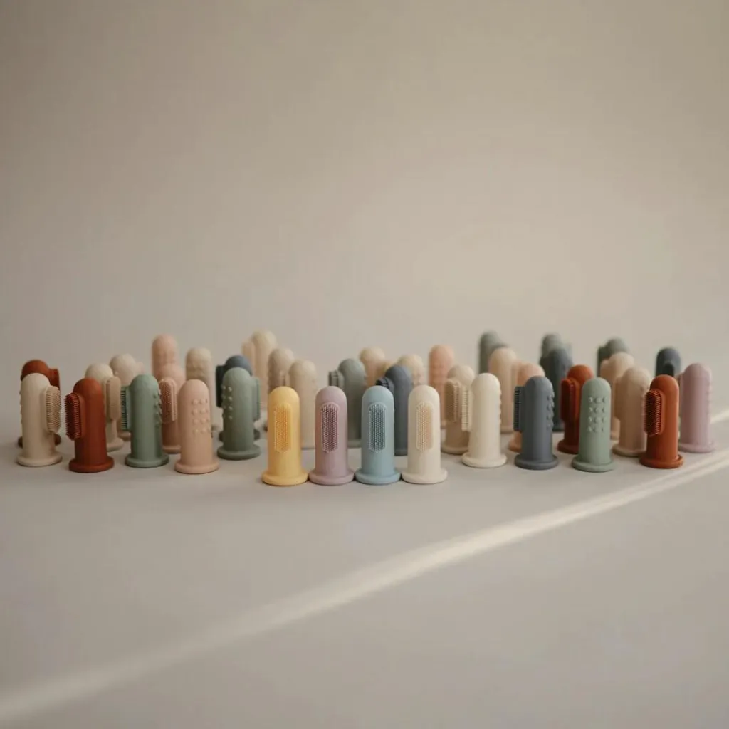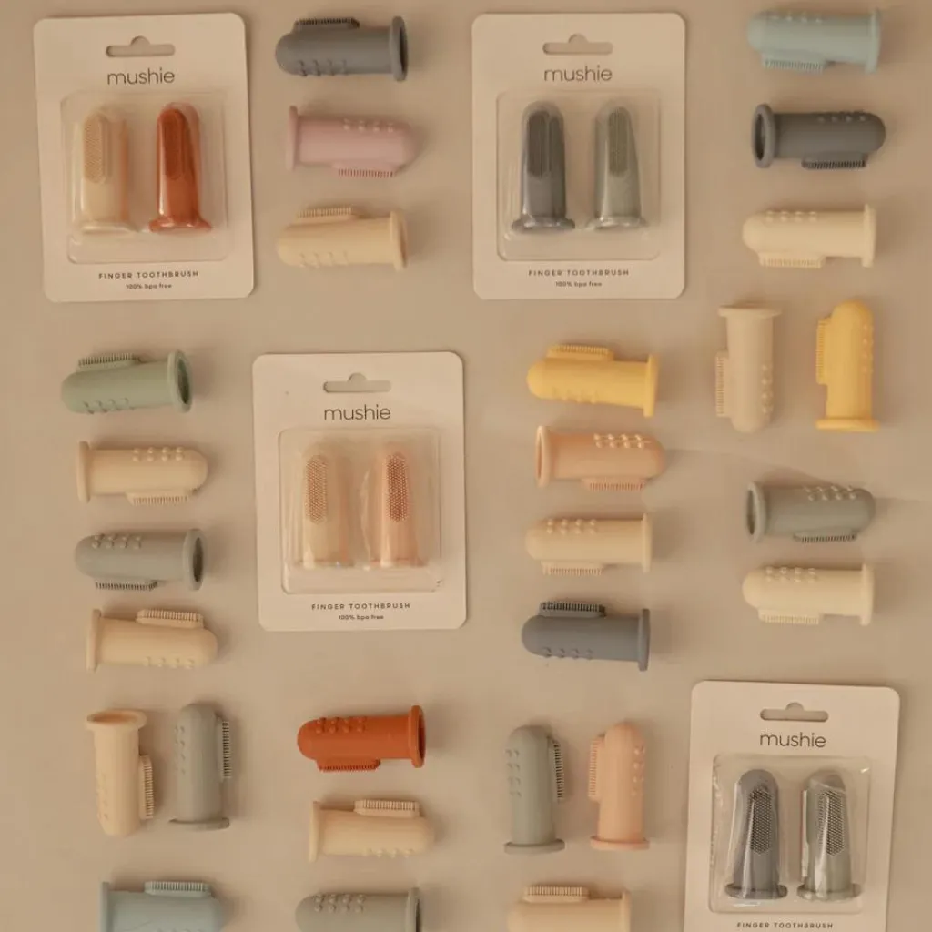 Pensées pour les premières dents de bébé, ces brosses à dents en silicone se glissent sur le doigt du parent pour un brossage tout en contrôle. Leur double texture permet à la fois de nettoyer en douceur et de masser les gencives sensibles.