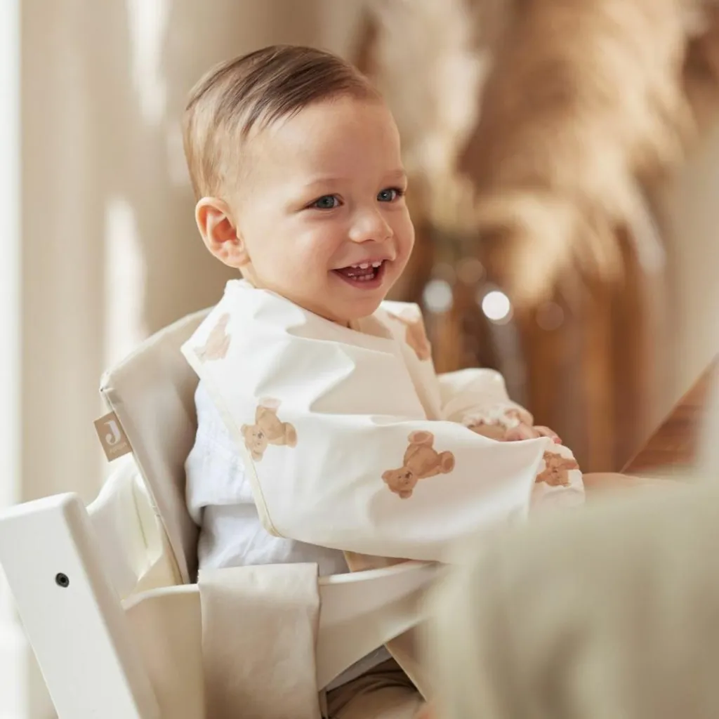 Le bavoir manches longues Teddy Bear de Jollein combine protection et design adorable, rendant les moments de repas et de jeu plus sereins et plus propres.