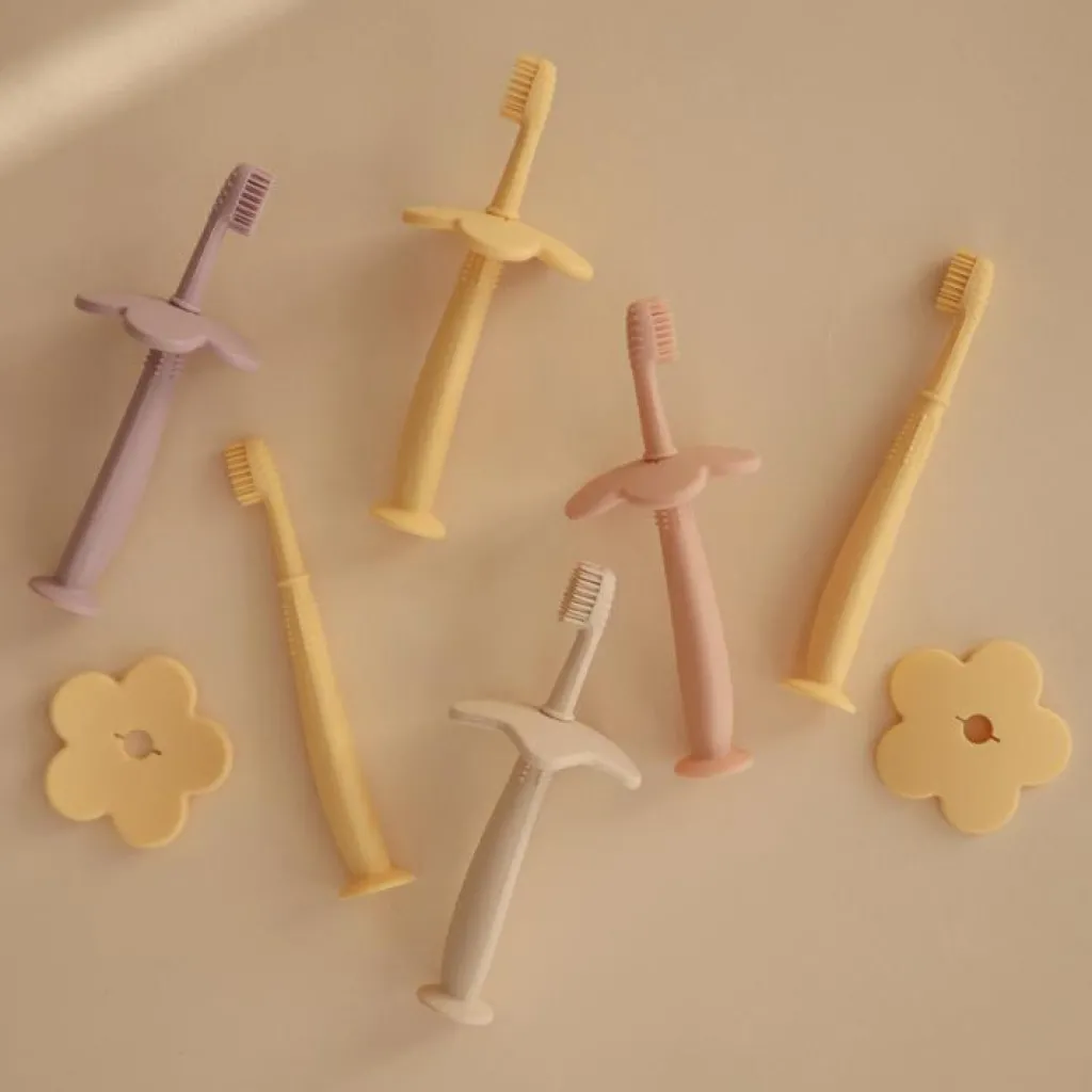 – Garde amovible en forme de fleur évitant d’enfoncer la brosse trop loin dans la bouche.