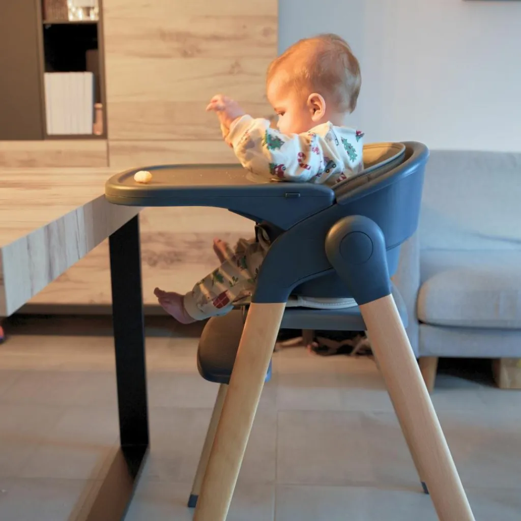 Avec la chaise haute en bois Grow With Me, votre petit est toujours confortablement assis à hauteur des yeux à table. À mesureque votre enfant grandit, vous pouvez facilement ajuster la chaise en retirant le siège pour bébé. Grâce au repose-pieds réglable, la chaise évolue avec lui, du bébé à l’adulte. Votre enfant a toujours une position assise confortable et ergonomique.