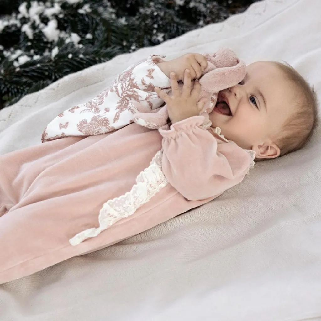 Ce petit lapin câlin, habillé d’un imprimé Toile de Jouy rose délicat, est parfait pour accompagner bébé dans ses doux rêves. Avec ses longues oreilles faciles à attraper et son visage rassurant, Augustin devient vite le compagnon préféré des tout-petits.