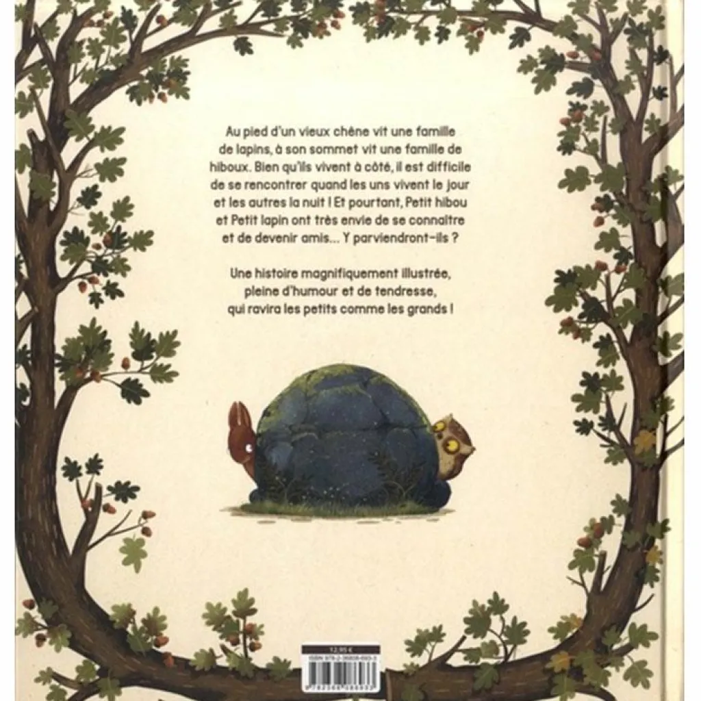 Au pied d’un vieux chêne vit une famille de lapins ; à son sommet vit une famille de hiboux. Bien qu’ils vivent à côté, il est difficile de se rencontrer quand les uns vivent le jour et les autres la nuit ! Et pourtant, Petit hibou et Petit lapin ont très envie de se connaître et de devenir amis… Y parviendront-ils ? L’histoire pleine de magie d’une amitié qui dépasse les différences et les frontières, avec des petits personnages attachants auxquels s’identifier.
