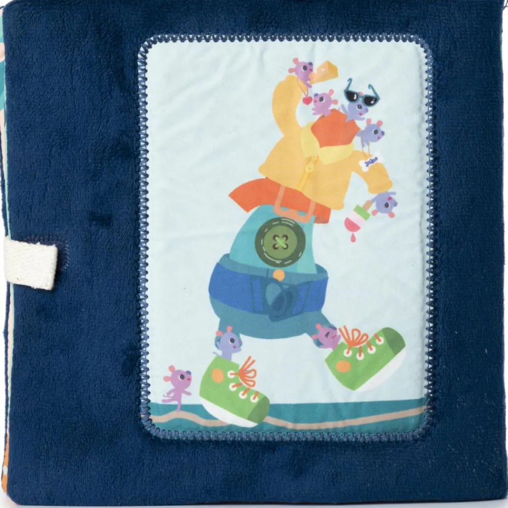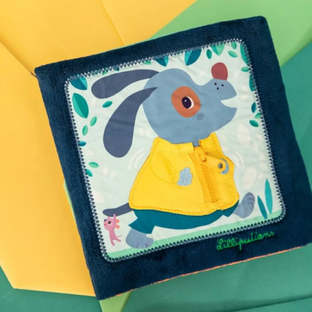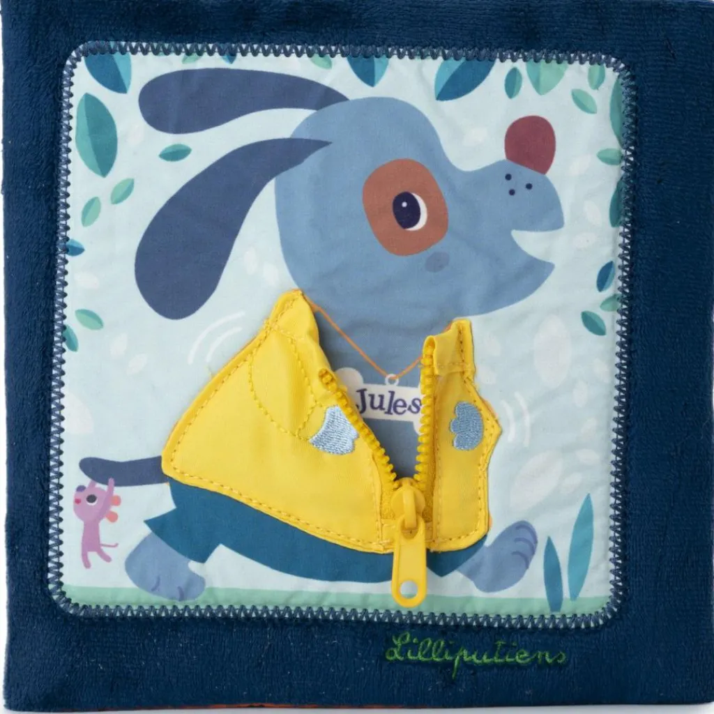 – Chaque page comporte un élément de vêtement (fermeture éclair, bouton, lacet, etc.).