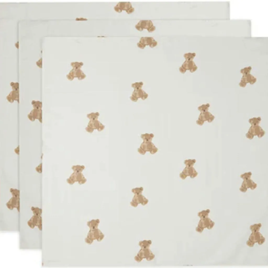 Craquez pour la douceur et la tendresse du lot de 3 langes en gaze de coton Teddy Bear de Jollein.