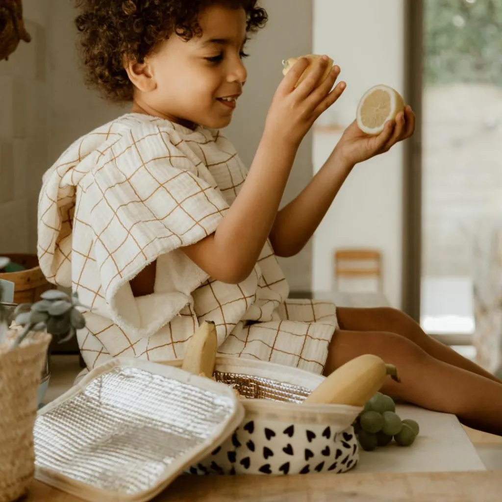 À la crèche, à l’école ou en balade, ce petit sac au motif cœur transporte le goûter ou le déjeuner de votre enfant tout en préservant sa fraîcheur. Grâce à sa doublure isotherme, les compotes restent fraîches, les sandwiches moelleux, et les petits encas savoureux jusqu’à l’heure du repas.