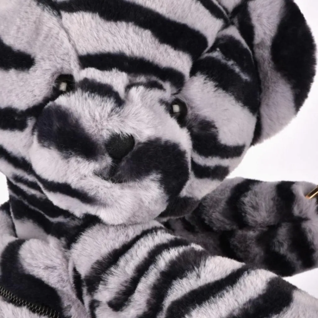 – Confortable et câlin, cet ours aux rayures zébrées noir et gris se love contre vous tout en ajoutant une touche d’originalité à votre tenue.