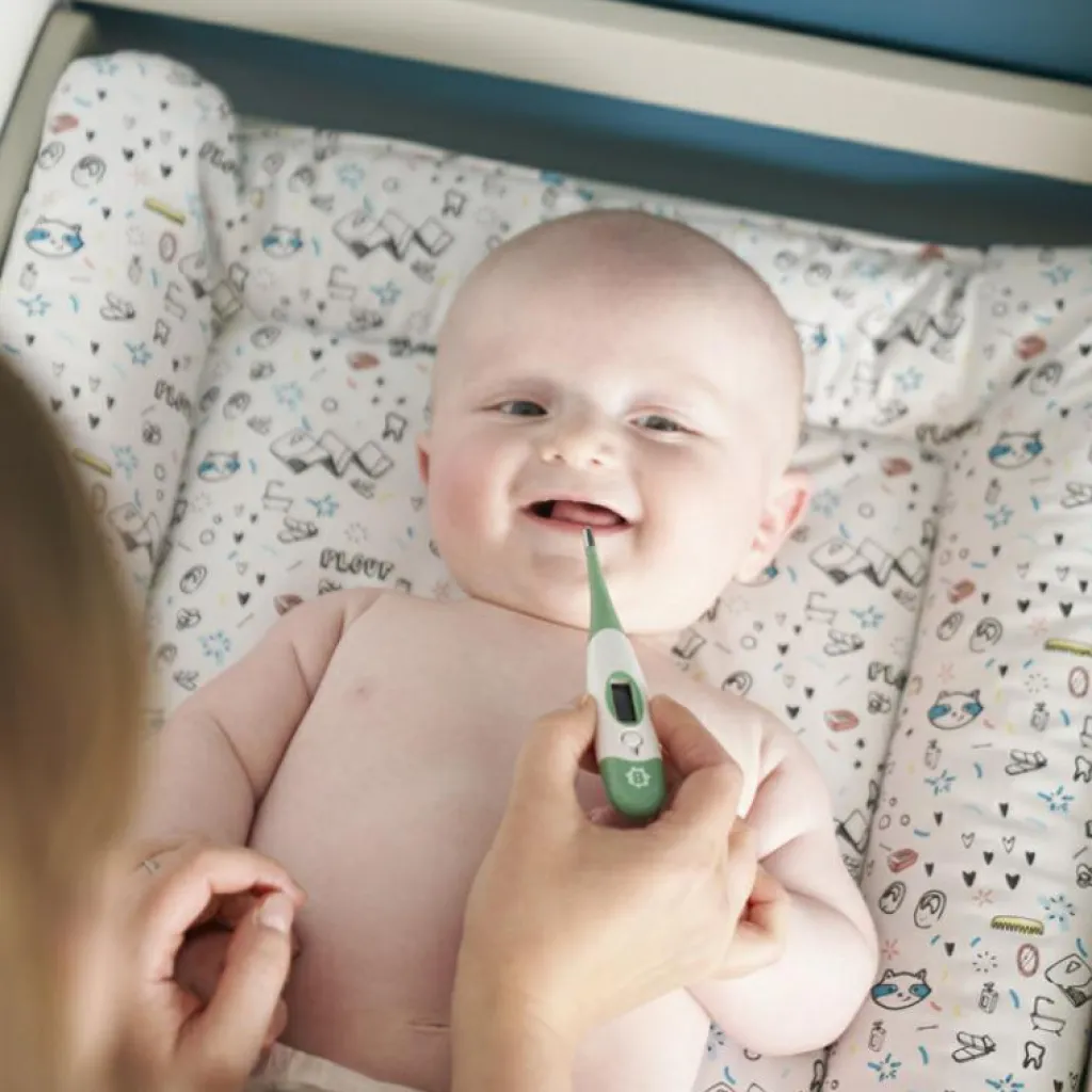 – Signal sonore de fin de mesure et si fièvre à 37,8°.