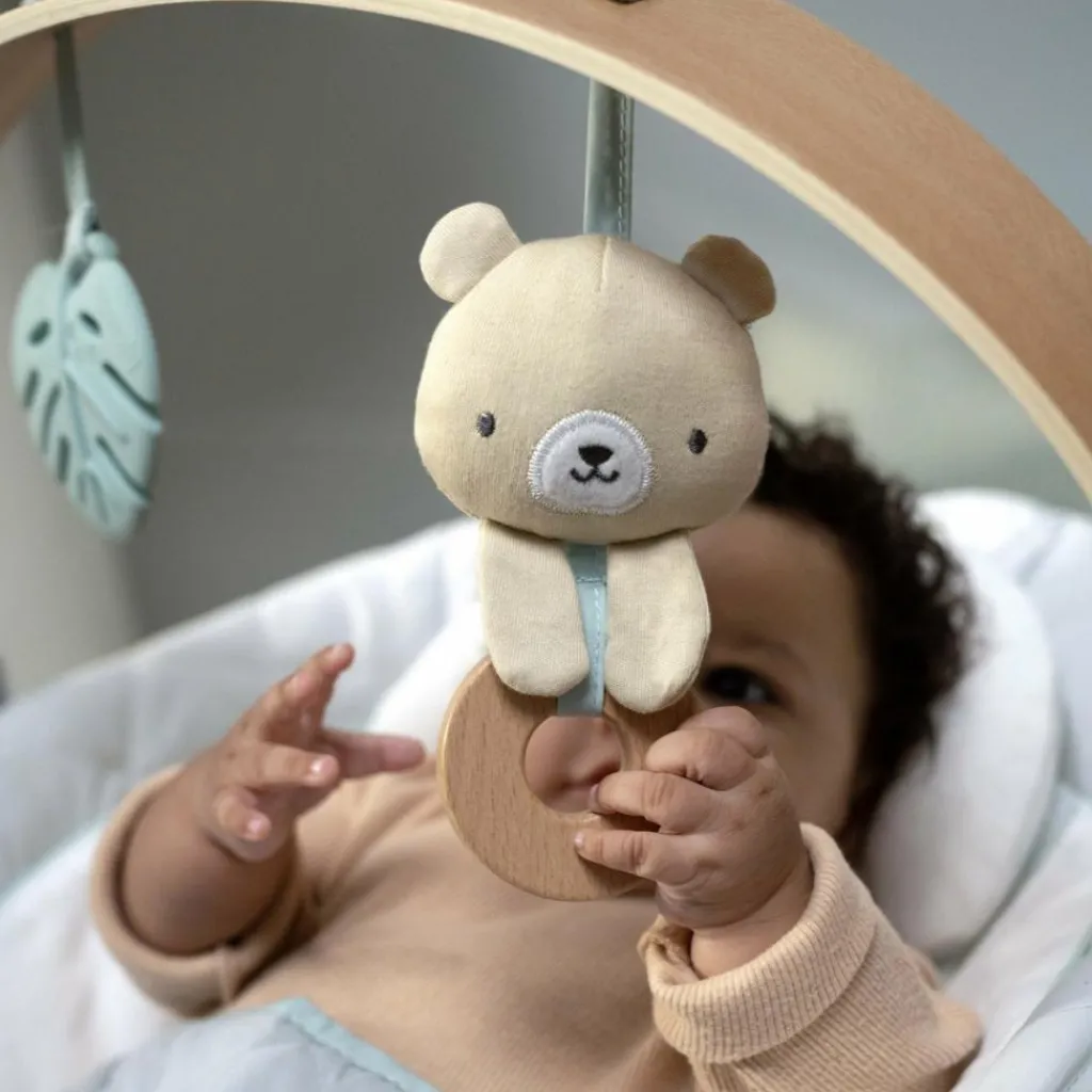 – 1 peluche Nate l’ours avec anneau en vois naturel.
