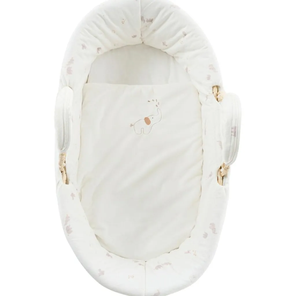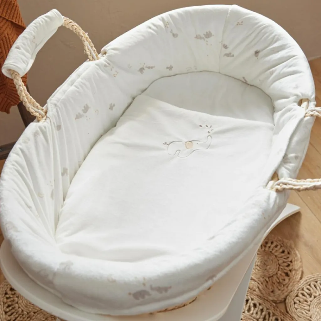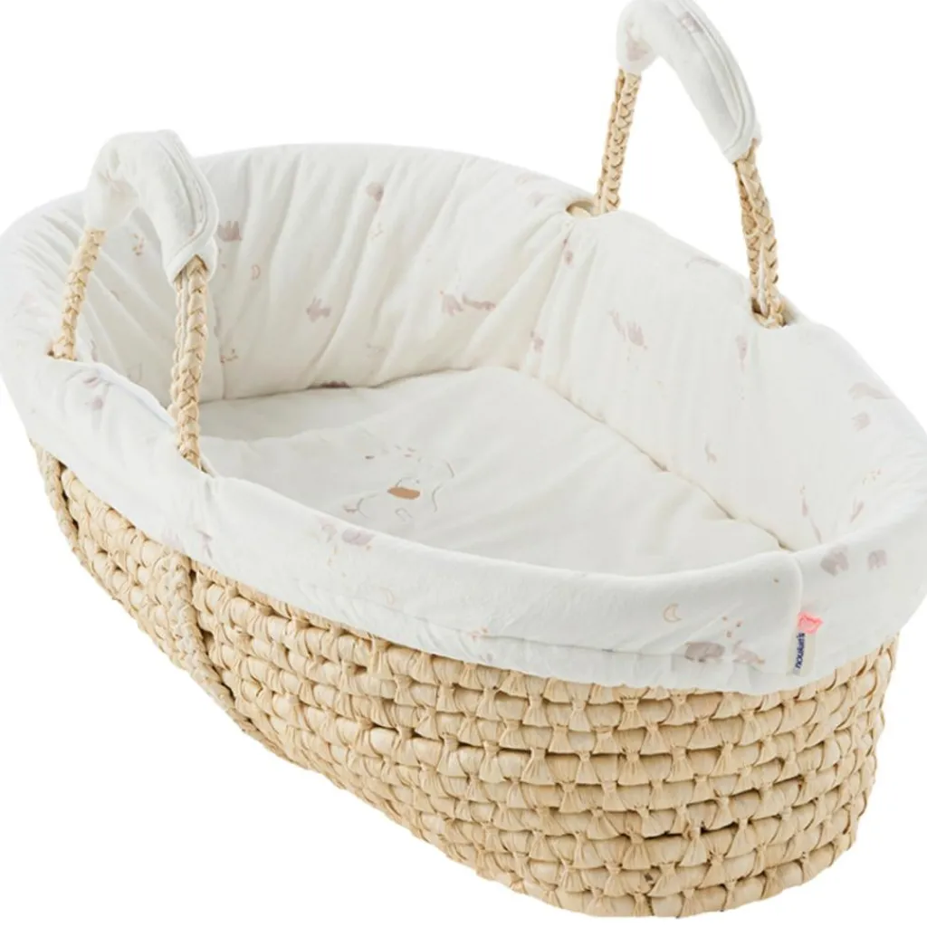 – Le couffin Noukie’s, avec son imprimé douxen Veloudouxécru de Bali et Moka, offre un environnement sécurisé et confortable pour le sommeil de bébé.