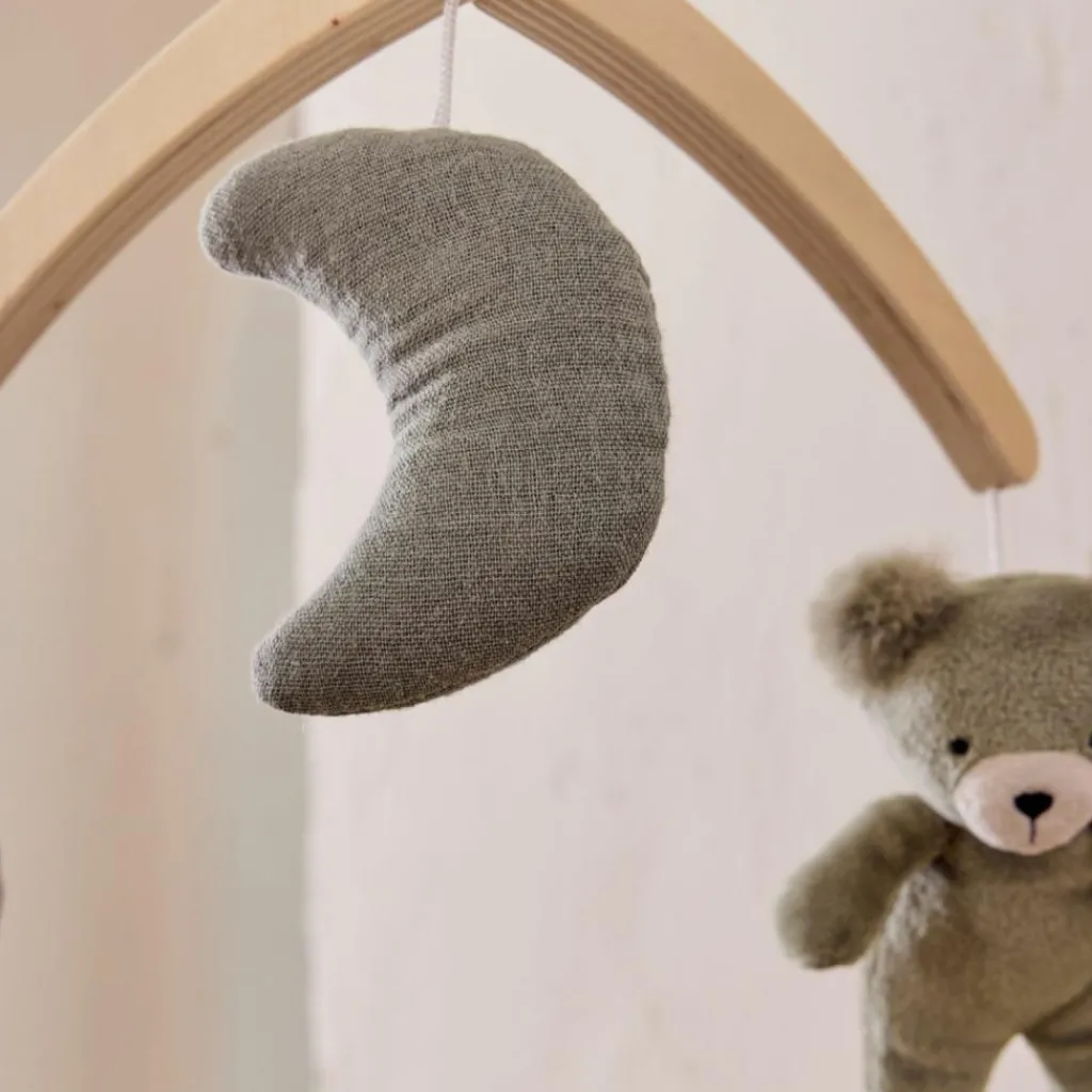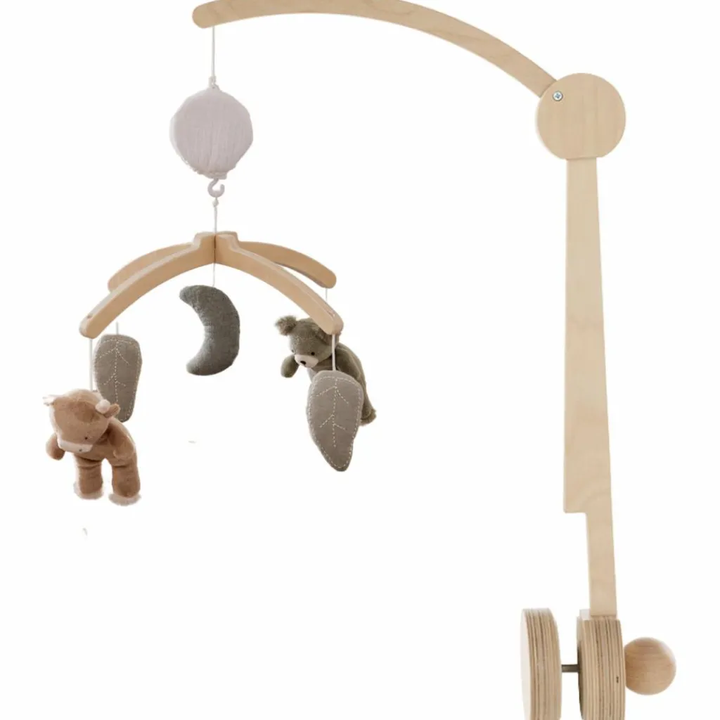 Mobile musical Orso et Fluffy avec bras en bois – Une mélodie douce pour apaiser bébé