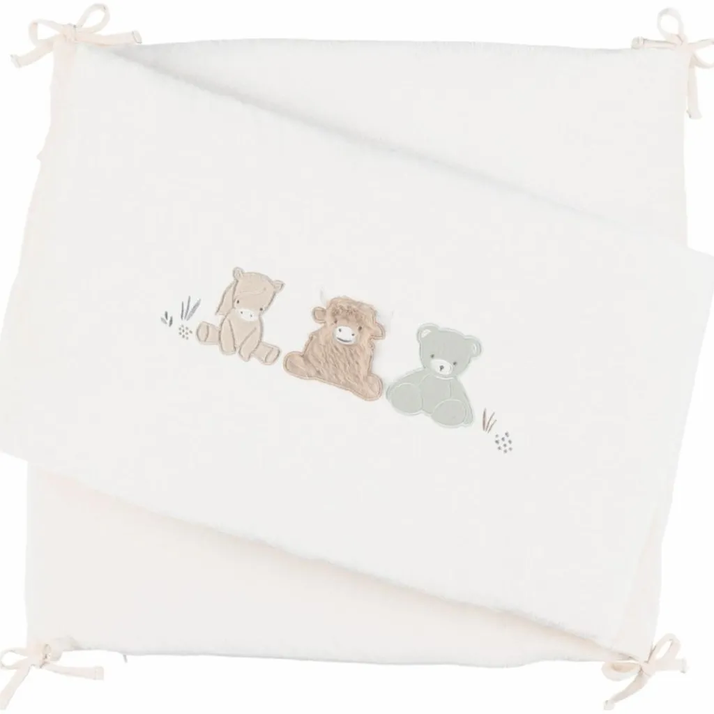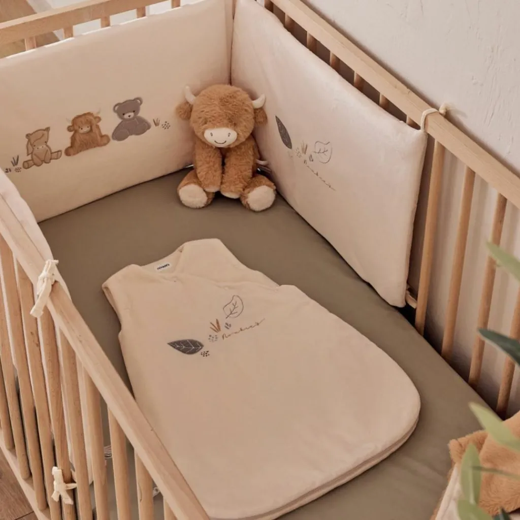Apportez confort et sécurité à votre bébé avec le tour de lit réversible beige brodé, un indispensable pour une chambre douce et apaisante.