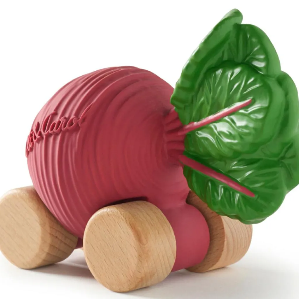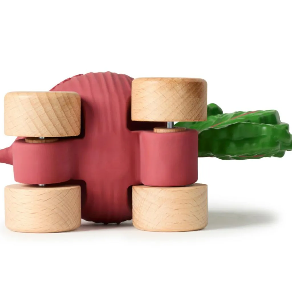 Inspirée d’une petite betterave malicieuse, Betty The Beetroot roule vers l’amusement tout en respectant la planète. Fabriquée à la main en caoutchouc naturel et en bois FSC, cette voiture sensorielle est douce, souple et totalement sûre pour bébé. Chaque exemplaire est peint à la main avec des pigments naturels, ce qui rend chaque jouet unique !
