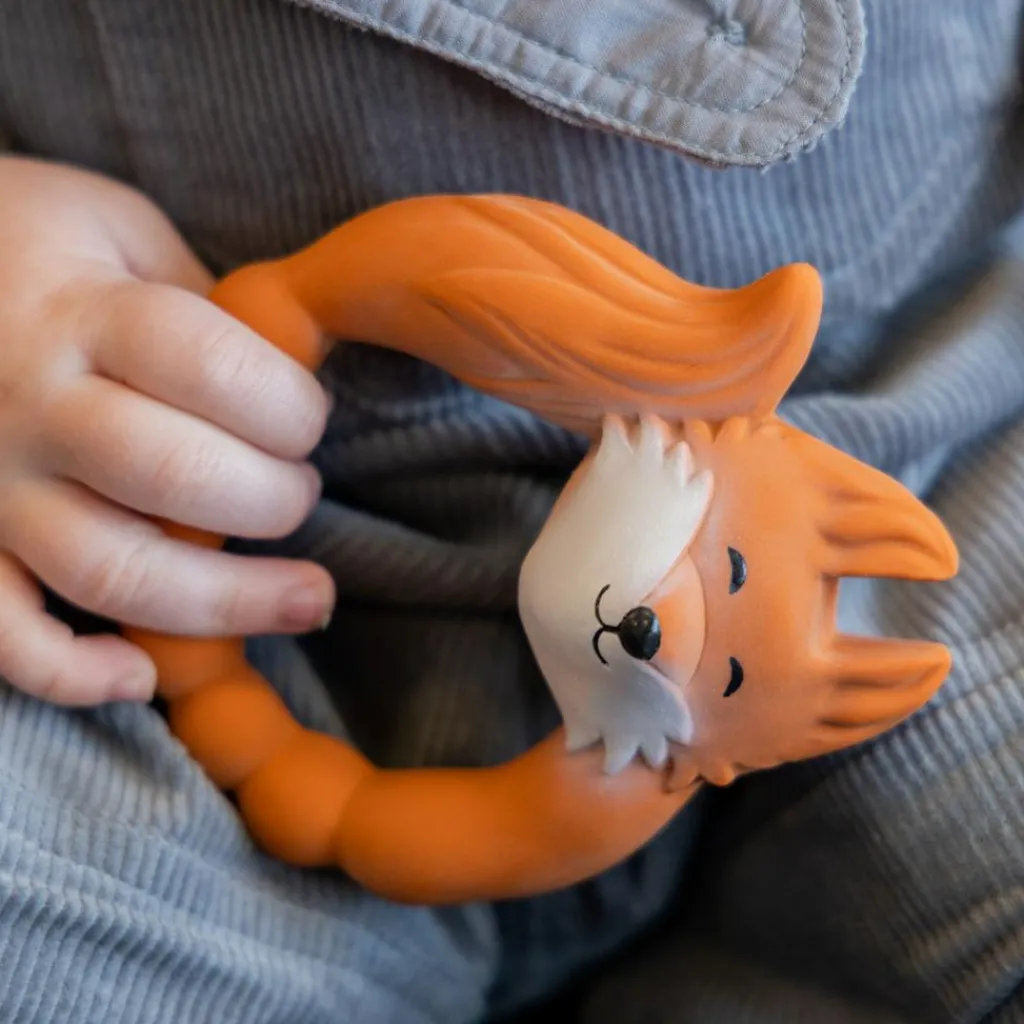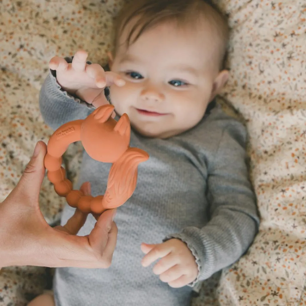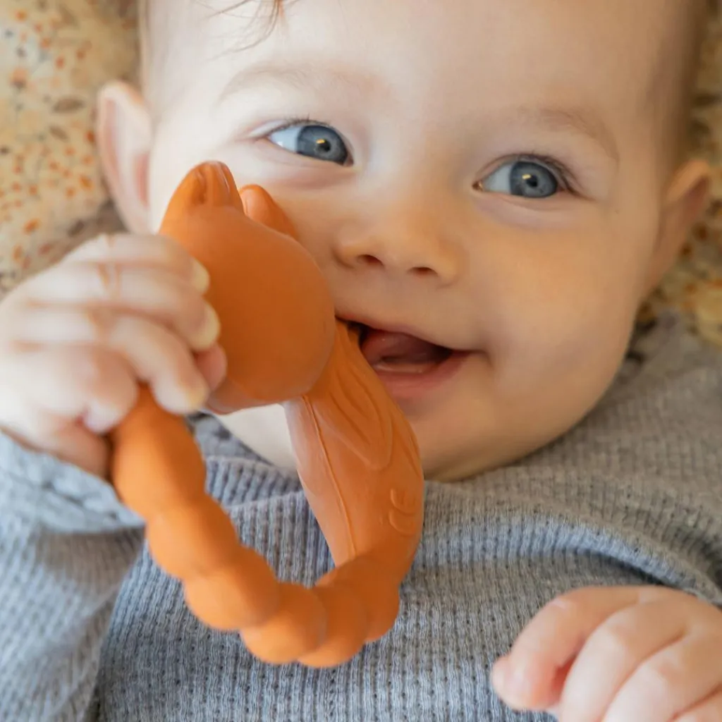 L’ anneau de dentition Renard de la marque Natrüba soulagera les gencives douloureuses de votre bébé pendant les poussées dentaires. En caoutchouc naturel issu de l’hévéa, et grâce à ses différentes textures, ce mignon renard stimulera les sens de votre tout-petit.