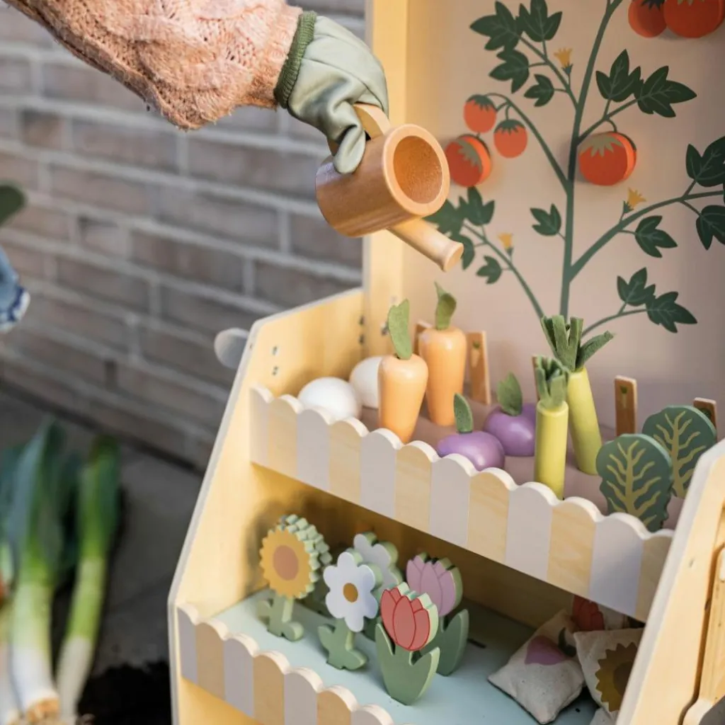 Ce chariot en bois joliment illustré permet aux enfants de découvrir les joies du jardinage à travers le jeu. Avec ses nombreux accessoires (outils, graines, légumes et fleurs en bois colorés), il invite à planter, arroser, récolter et inventer de belles histoires autour de la nature. Un jouet d’imitation complet qui développe la créativité, la patience et l’amour de la nature dès le plus jeune âge.