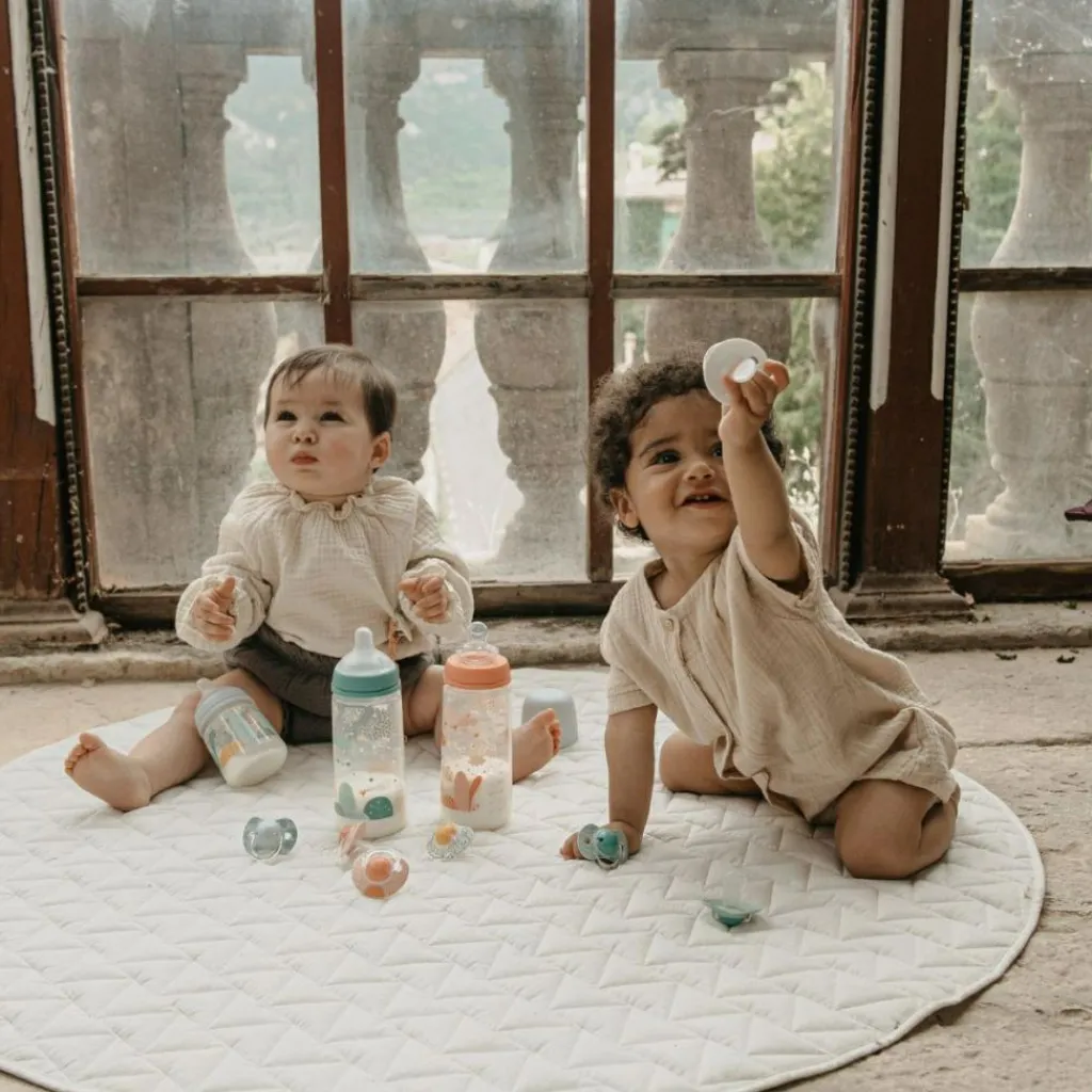 – Cette nouvelle tétine symétrique a été créée en tenant compte des caractéristiques buccales du bébé, dont le maxillaire et la mandibule qui sont en plein développement.