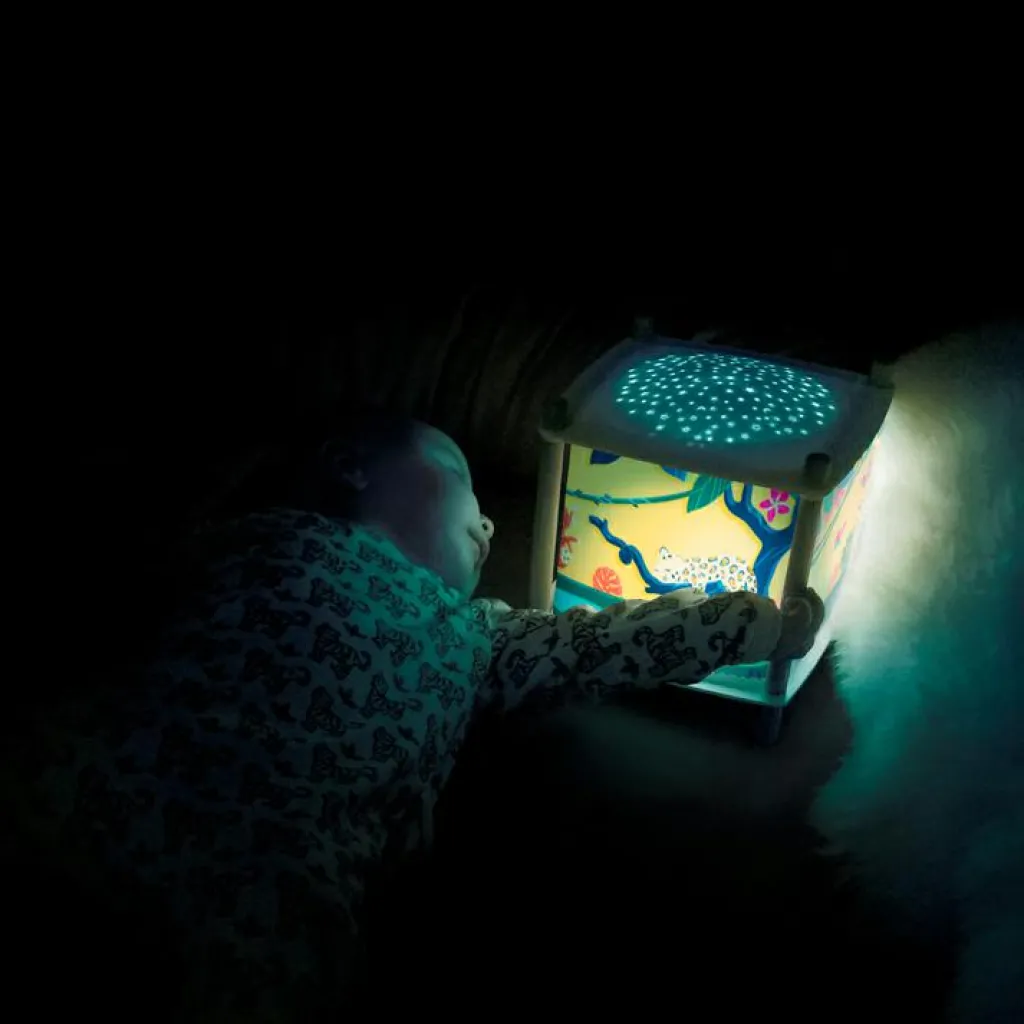 La lanterne magique musicale Révolution 2.0 Savane de la marque Trousselier accompagne l’enfant vers le sommeil tout en douceur tout en stimulant son imagination pour qu’il fasse de beaux rêves.