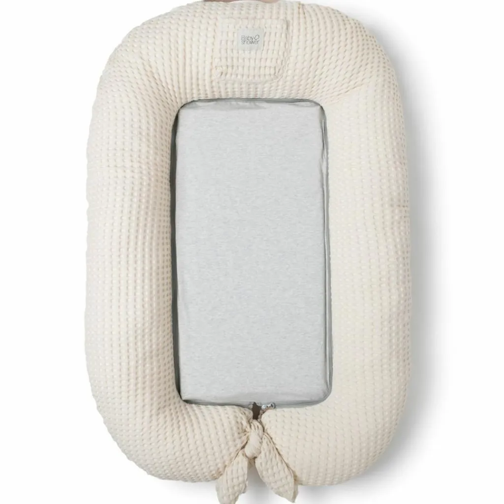 Ce modèle ingénieux combine un réducteur de lit et un coussin d’allaitement. Le matelas central, en mousse, est amovible via une fermeture éclair, vous permettant de transformer le Babynest en coussin de maternité en un clin d’œil. Pratique et durable, il accompagne votre bébé jusqu’à ses 12 mois et peut s’ouvrir au niveau des pieds pour encore plus de liberté quand bébé grandit.