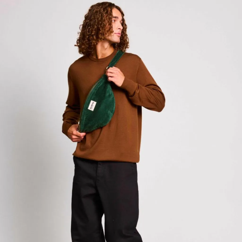 Sasha, c’est la banane pensée pour celles et ceux qui aiment avoir de la place sans compromettre leur style. Réalisée en velours côtelé épais certifié GOTS, elle séduit par sa texture douce, sa solidité et son allure intemporelle. Sa couleur sapin, profonde et raffinée, apporte une touche élégante à vos tenues, quelle que soit la saison.