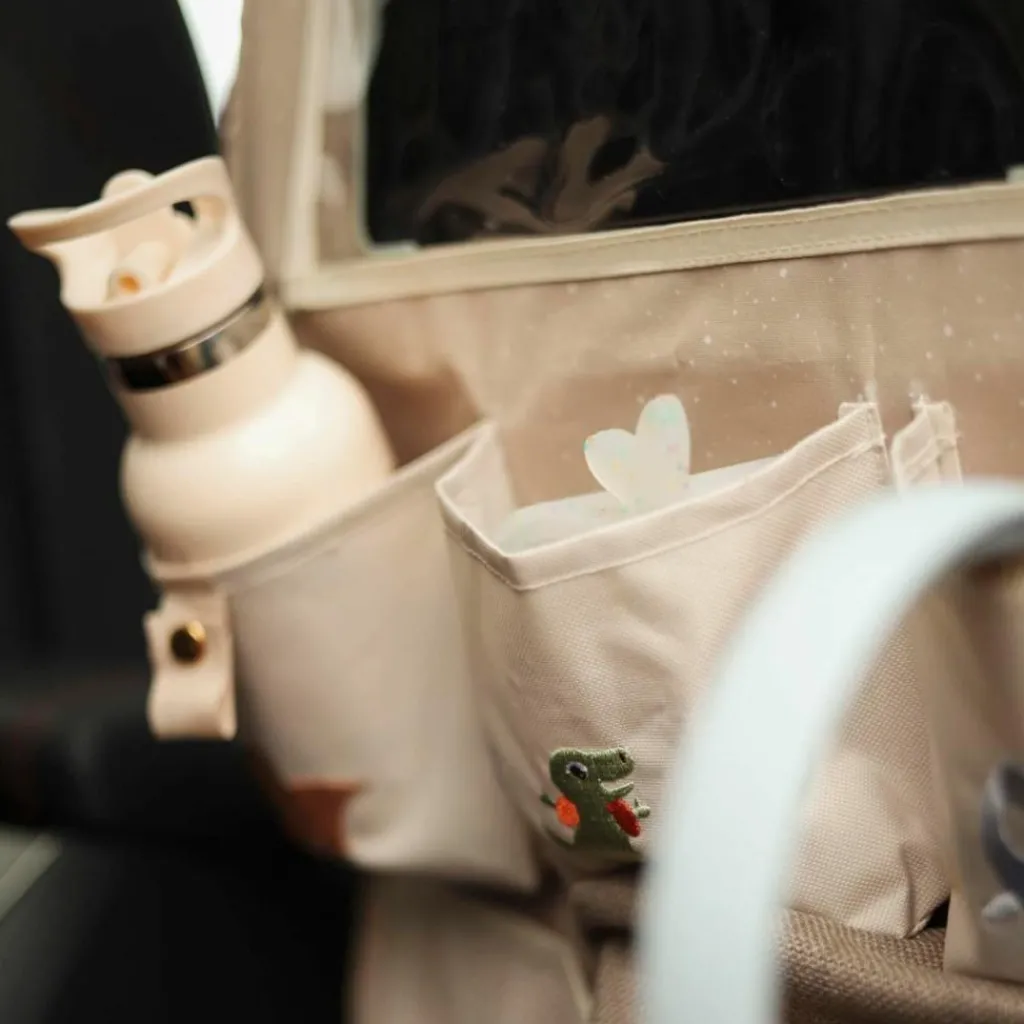 – Filet en maille, support pour tablette, trois poches et sangle pour écouteurs.