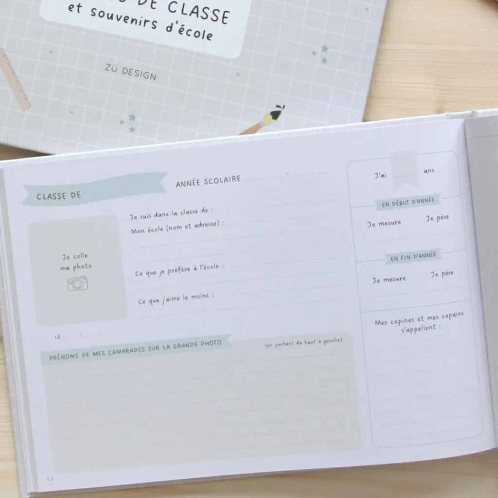 – 1 page pour coller la photo de classe.
