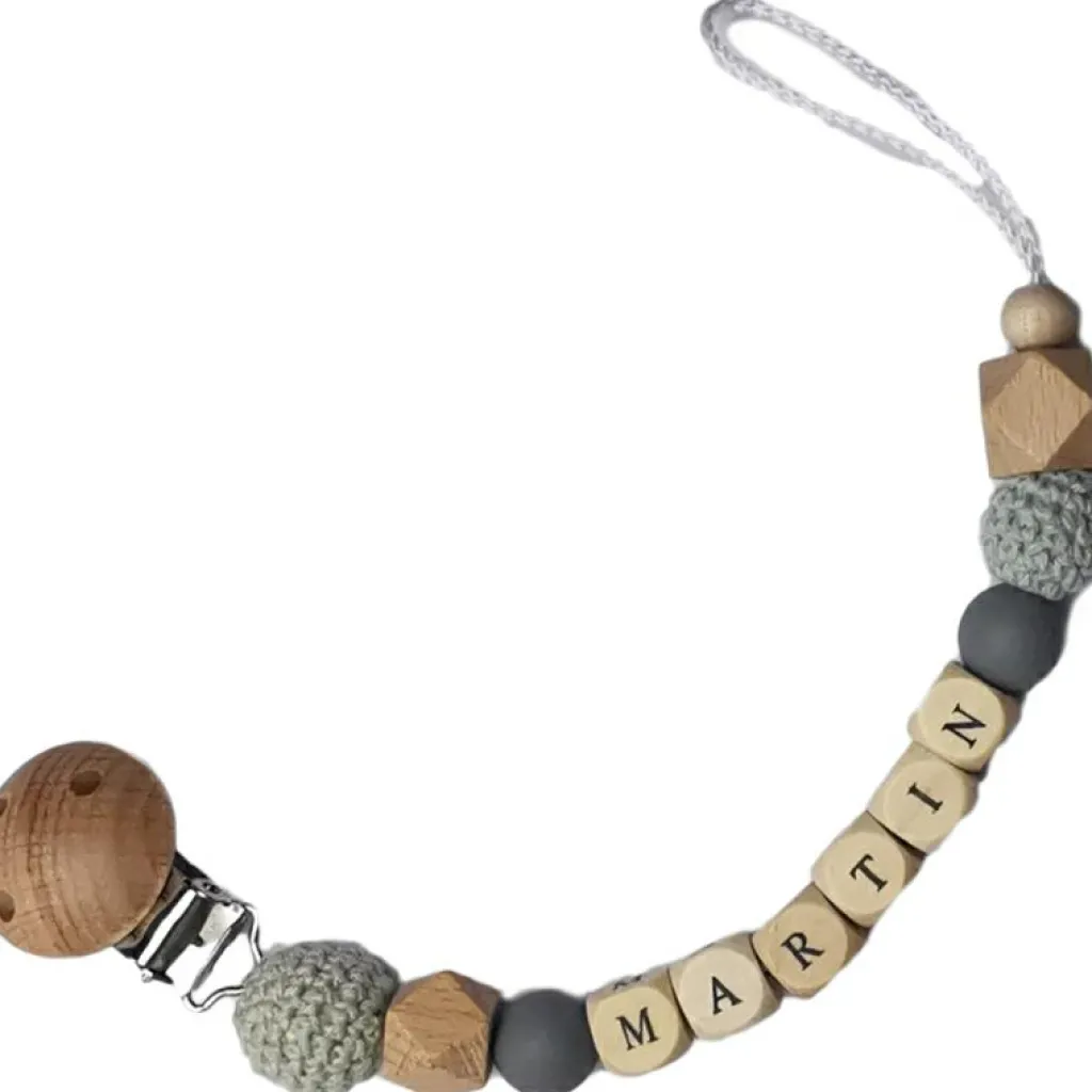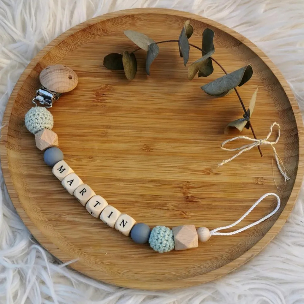 L’attache sucette en bois ardoise et mint de la marque Tata Lucette évitera à bébé de perdre sa sucette, pour qu’elle soit toujours là pour lui apporter du réconfort. Réalisée avec des matériaux naturels sains pour bébé, elle stimulera aussi son toucher grâce aux différentes matières. En plus d’être pratique, cet accessoire peut être personnalisé pour le rendre unique.