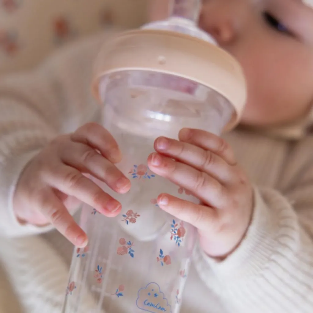 Matière : Bouteille: copolyester recyclable, bague: polypropylène, tétine: pure silicone medical