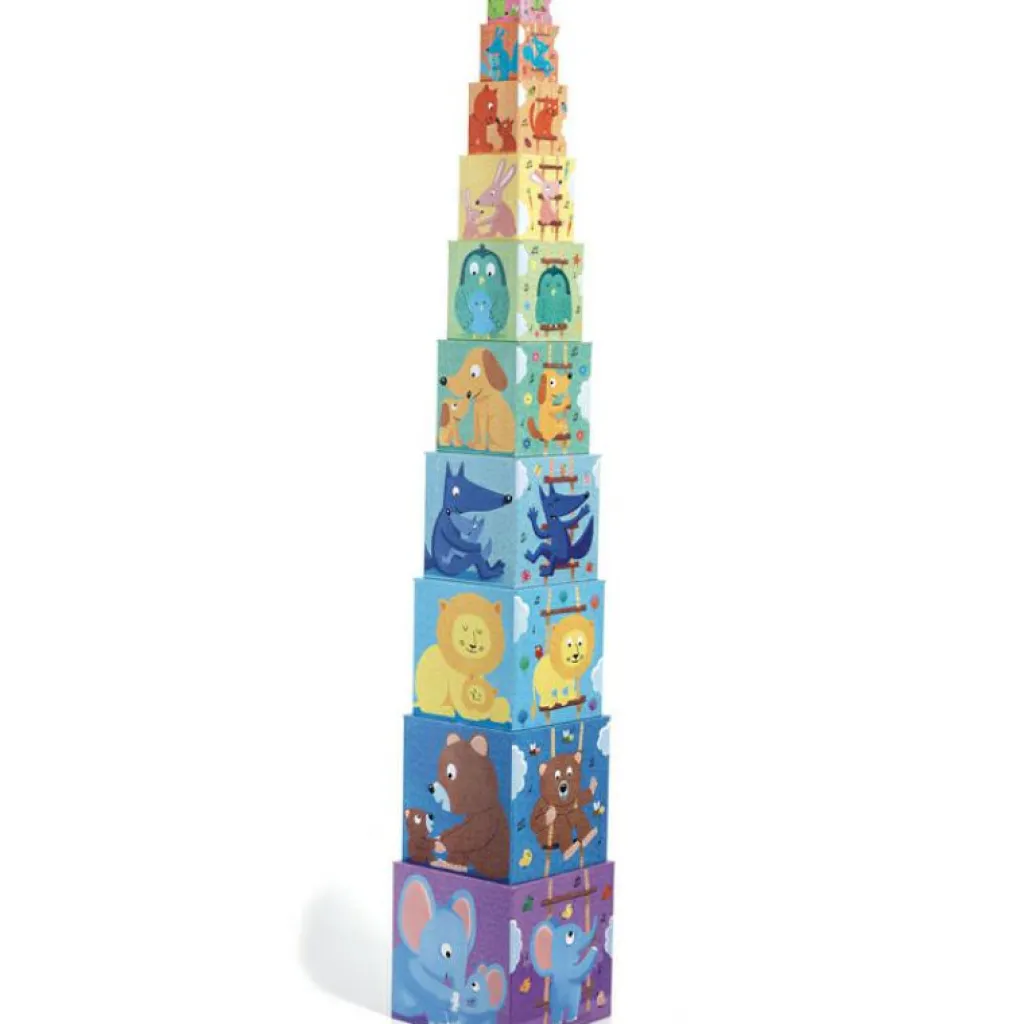 Éveillez les sens et la curiosité de votre enfant avec les Cubes à empiler Arc en ciel de Djeco.