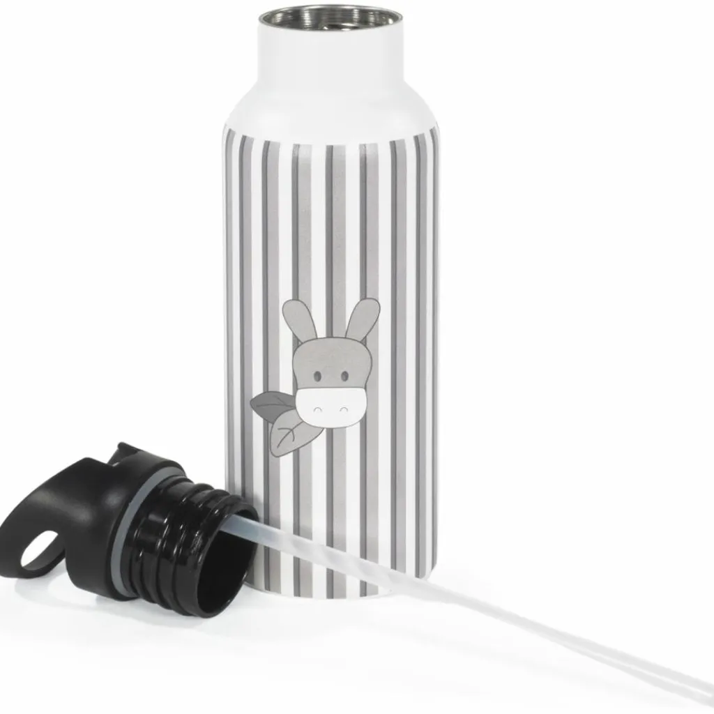 Avec son motif à rayures sobres et son adorable petit âne Botton, cette gourde isotherme séduit petits et grands. Que ce soit pour une sortie à l’école, une balade en poussette ou un goûter au parc, elle gardera la boisson de votre enfant bien au chaud ou délicieusement fraîche, selon les envies.