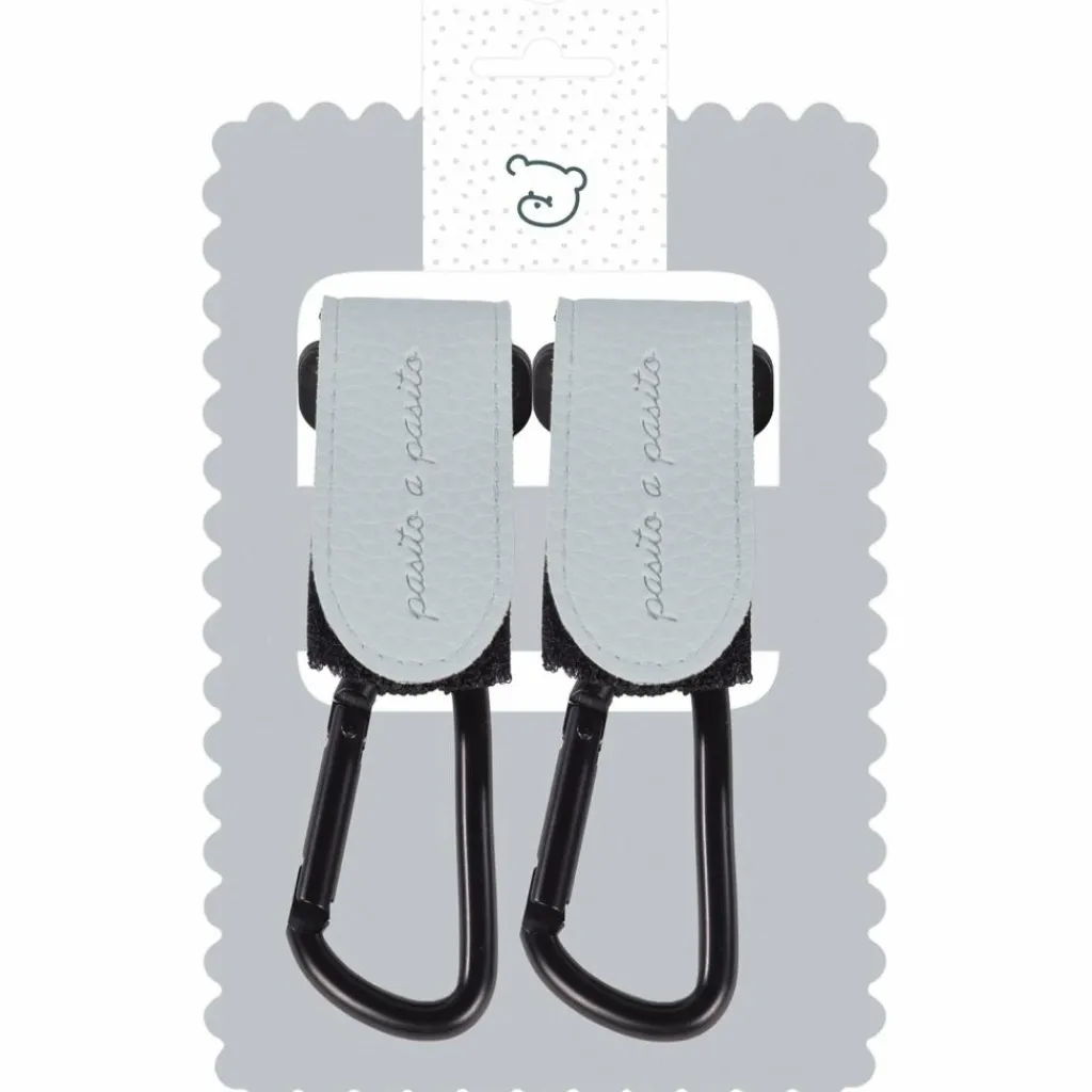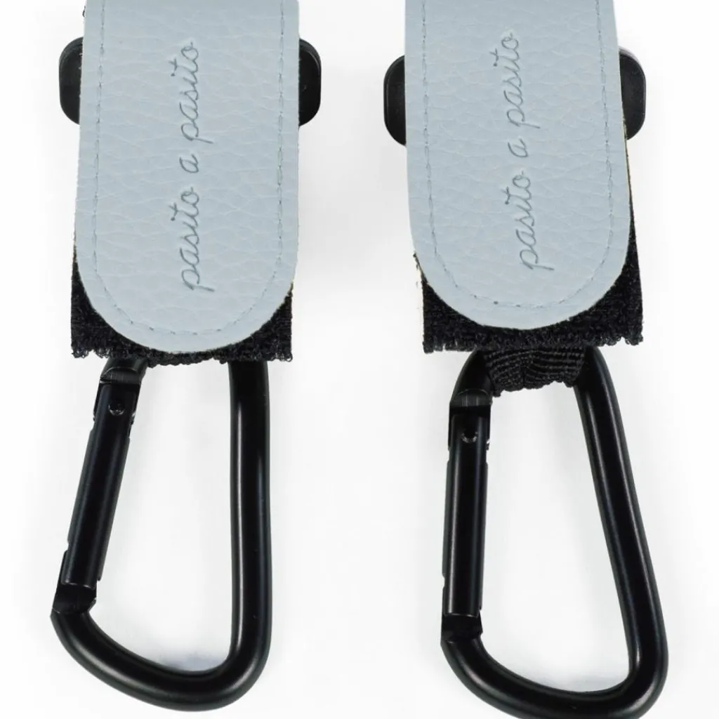 – Ensemble de 2 crochets pour poussette Icon Sky en similicuir bleu.