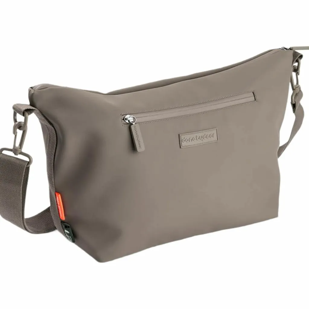 – Sac de poussette taupe pour tous les indispensables de bébé.