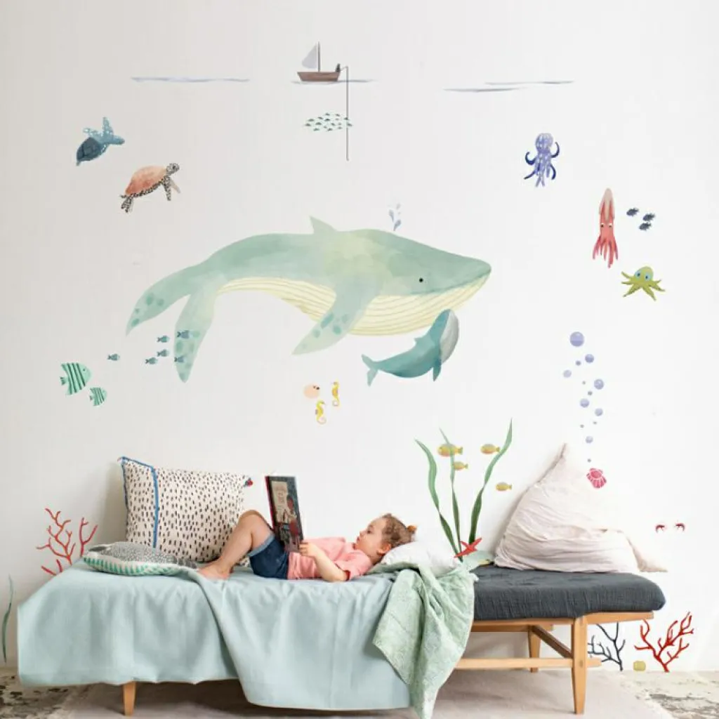 Transformez la chambre de votre enfant en monde sous-marin avec le Sticker géant L’océan de Mimi’lou.