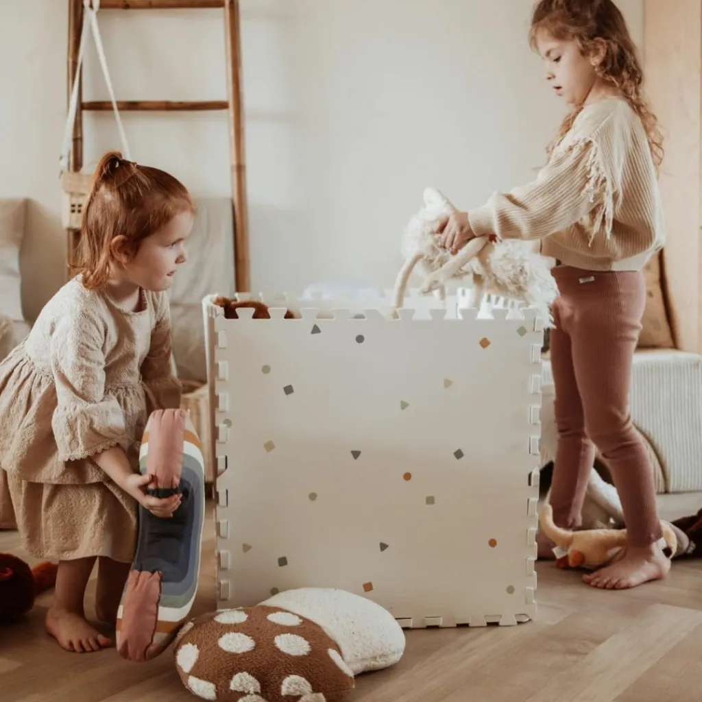– 2 en 1 : tapis de jeu puzzle, boîte de rangement.