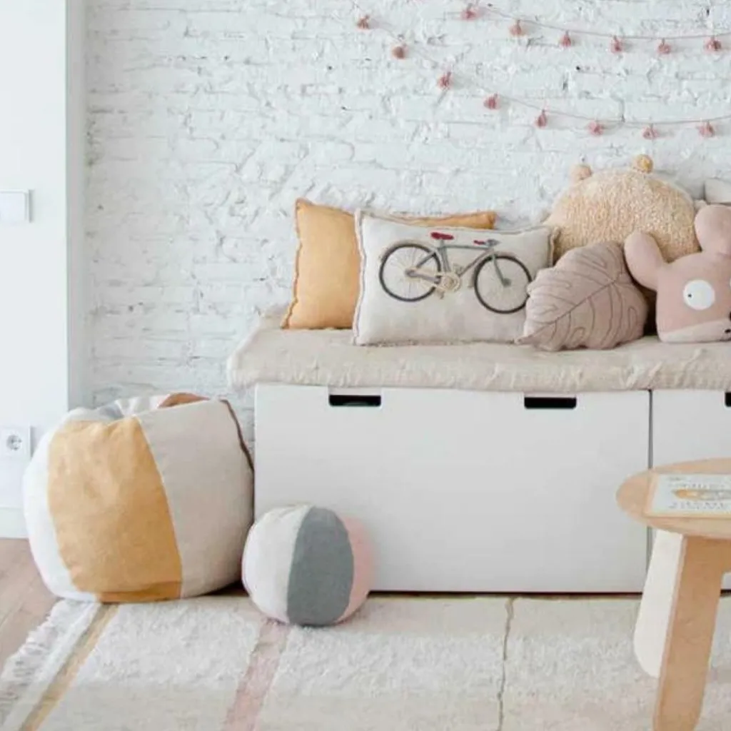 – Rembourrage composé d’un mélange de fibres provenant de bouteilles PET recyclées et de perles de polystyrène légères.