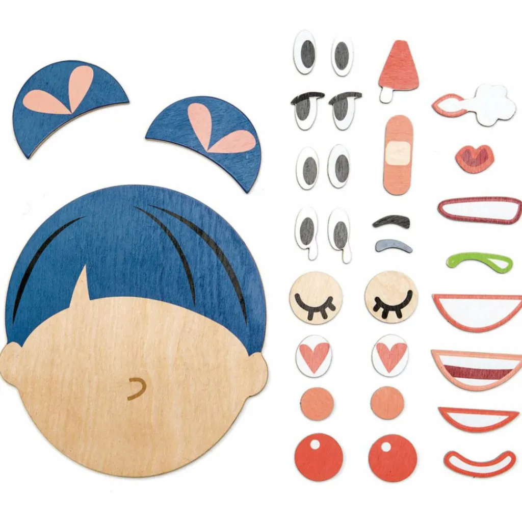 – 2 chignons et 28 pièces de visage magnétiques pour recréer toute sorte d’émotions.