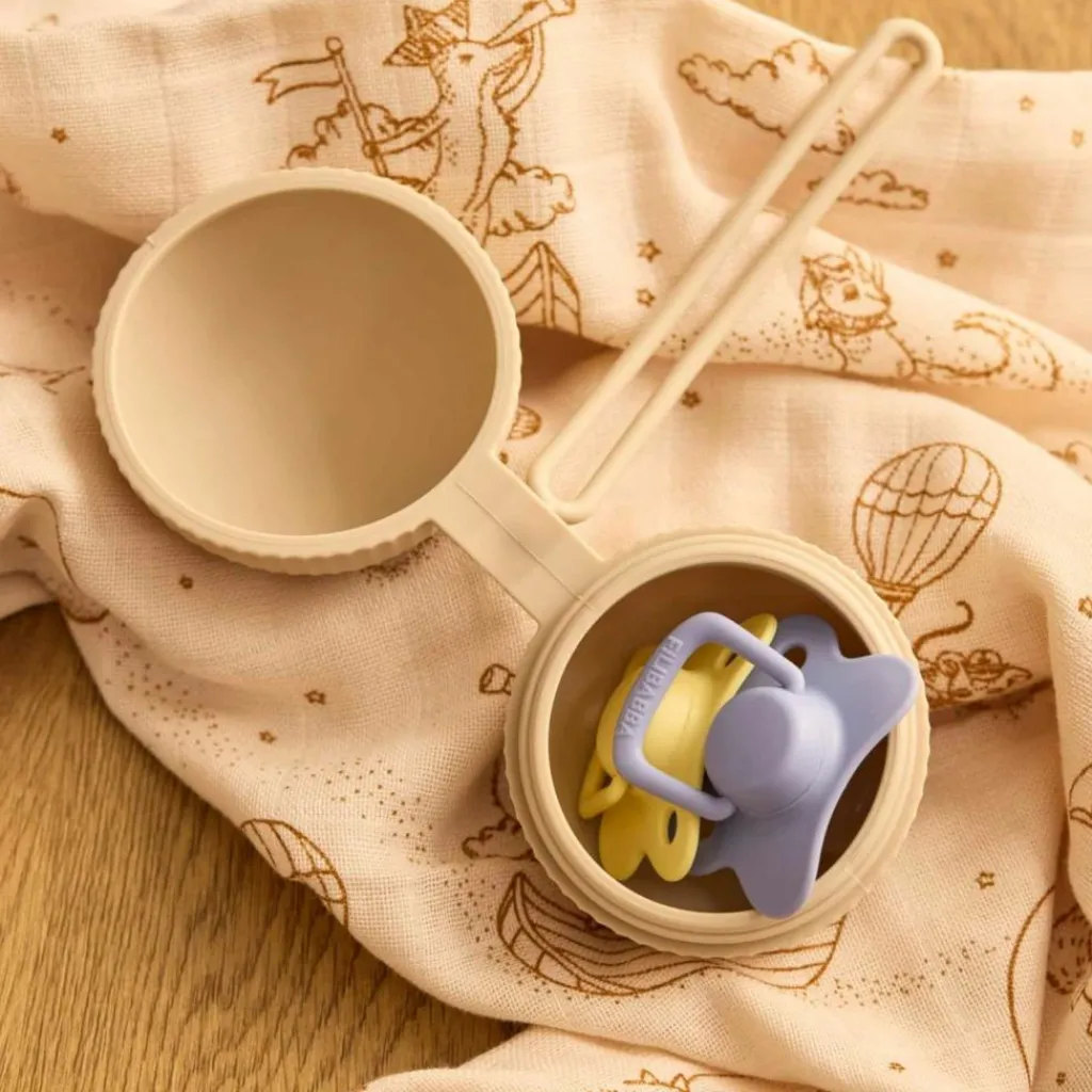 – Compact et pratique : format idéal pour contenir 2 à 3 sucettes en toute sécurité.