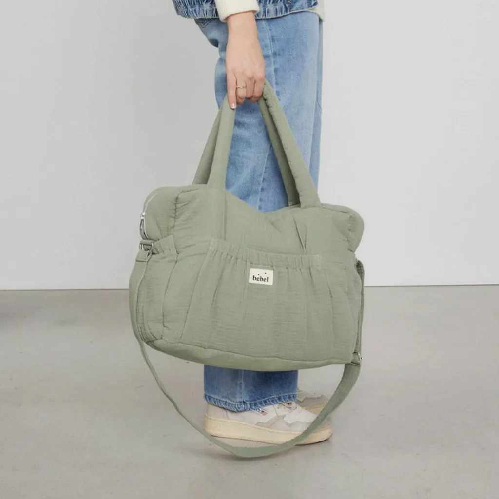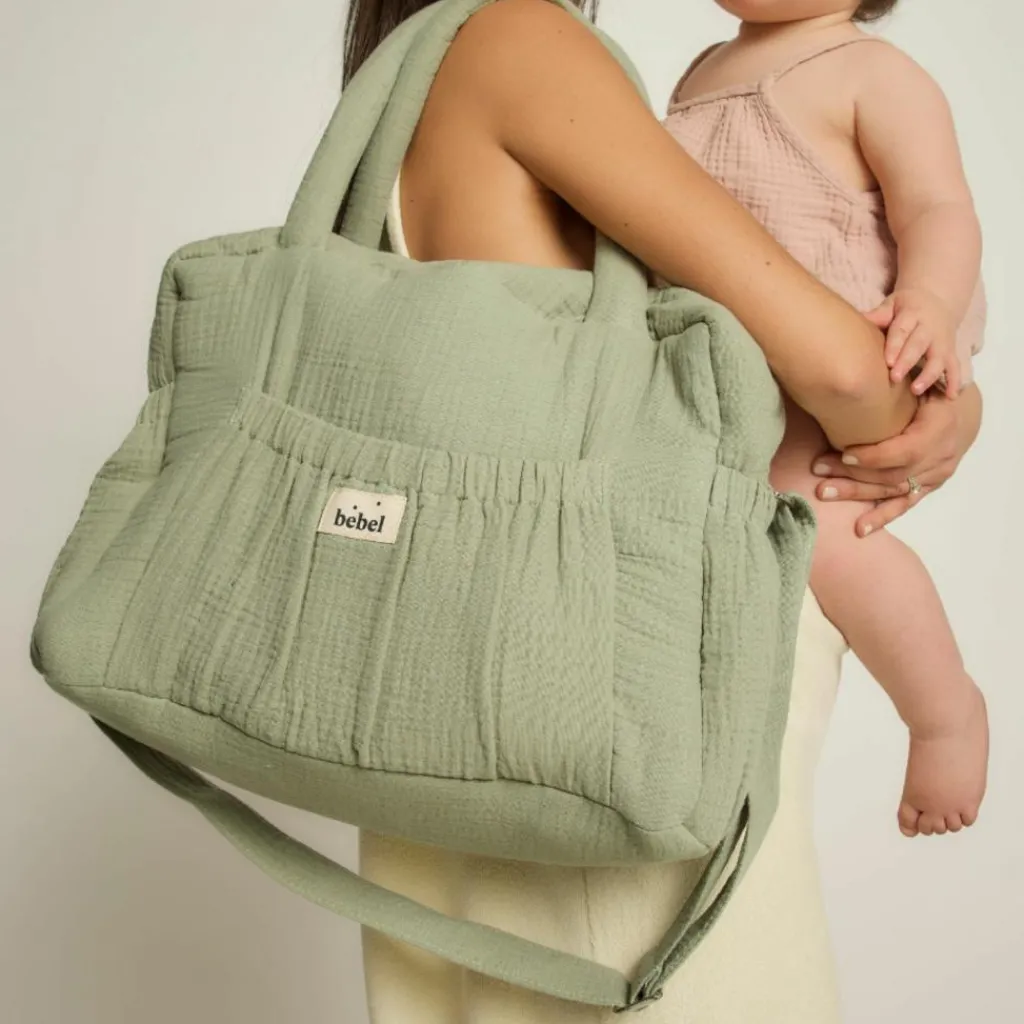 Adoptez l’élégance et la praticité avec le sac à langer à anses vert amande de BEBEL.