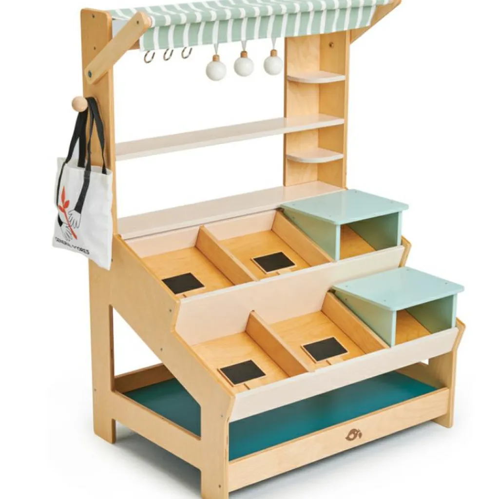 Transformez le jeu de votre enfant en une aventure passionnante avec l’Étal de marché en bois de la marque Tender Leaf !