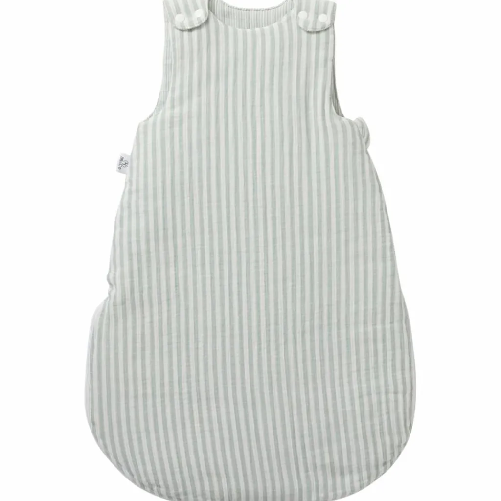 – Une gigoteuse entièrement doublée et ouatinée en gaze de coton rayé.