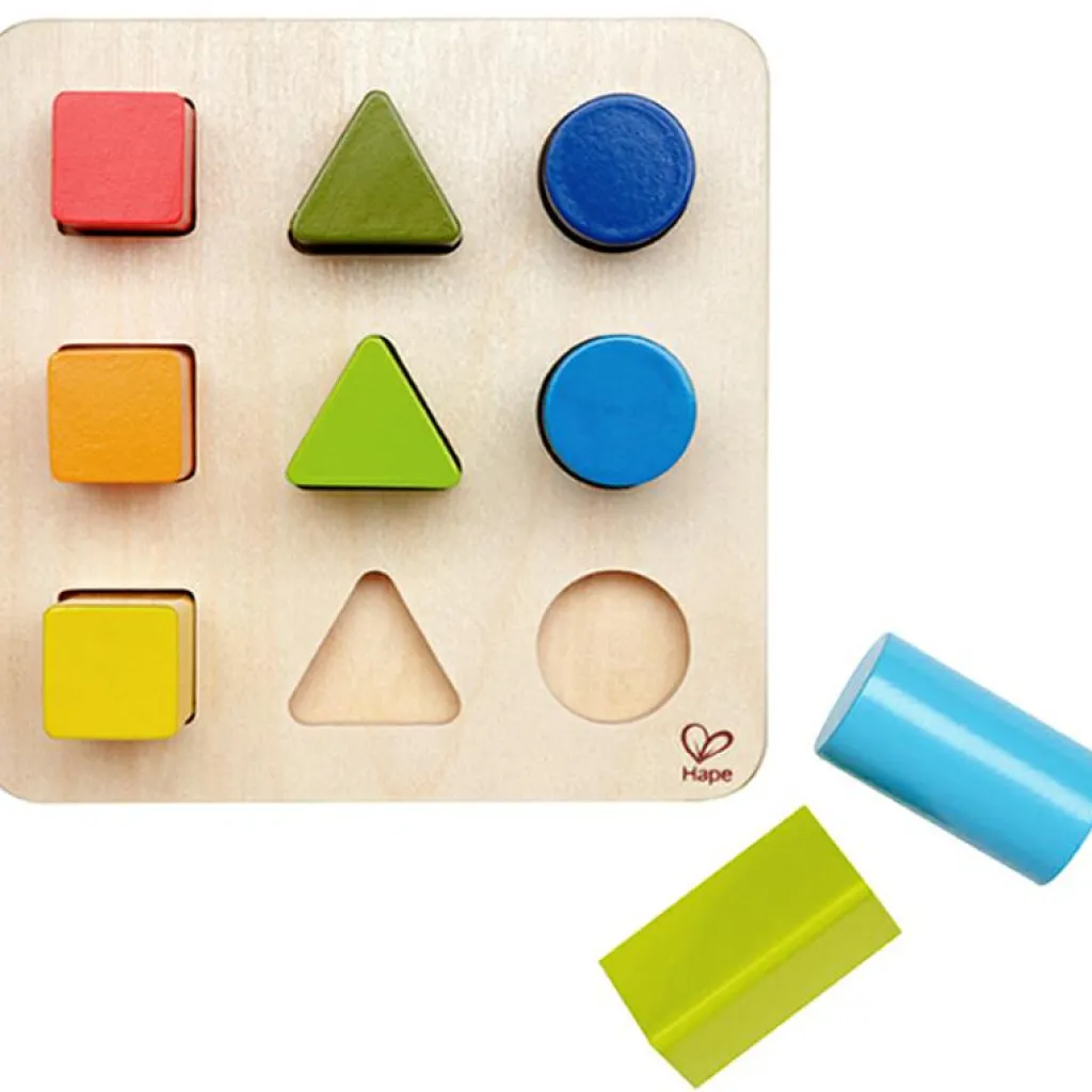Le jeu à encastrer formes et couleurs de la marque Hape favorise l’apprentissage des nombres, le tri et l’identification des couleurs et des formes.