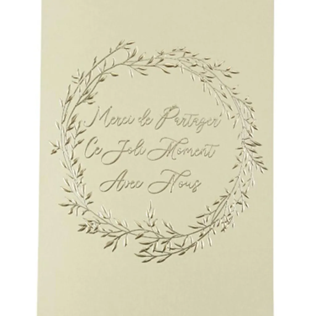 – Texte embossé doré.