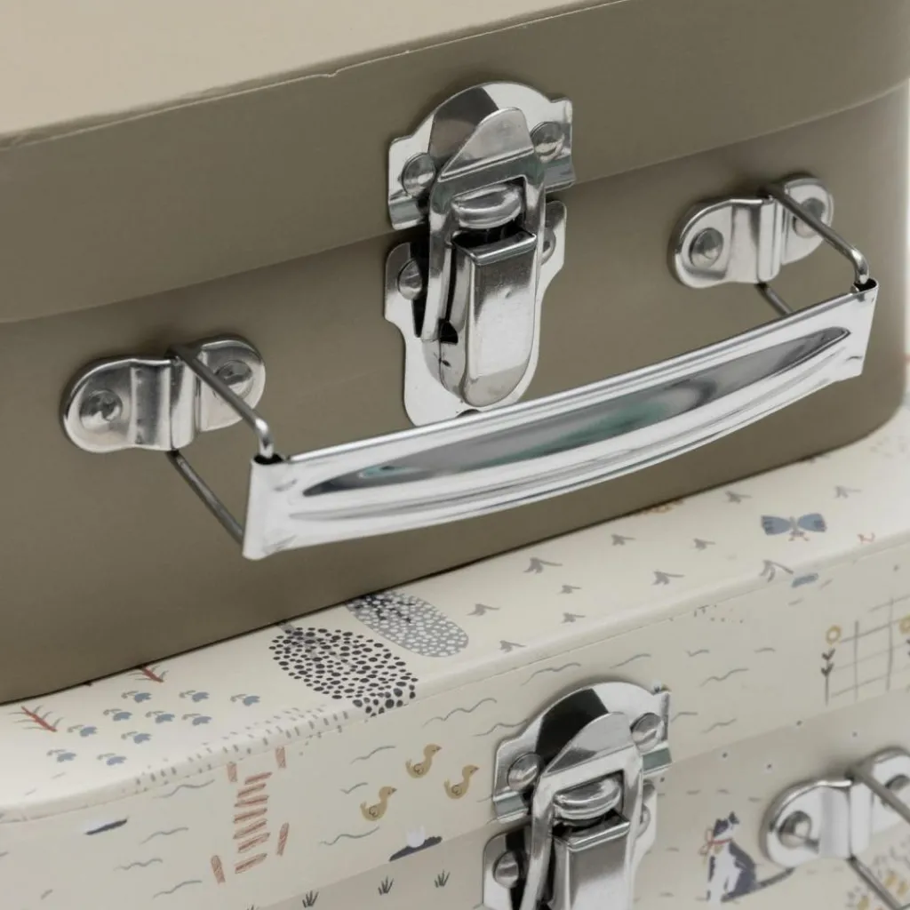 Un duo décoratif et fonctionnel : Sur une étagère, une commode ou en bout de lit, ces valisettes apportent une note chaleureuse et ordonnée à l’espace. Elles grandissent avec votre enfant et deviennent complices du quotidien, pour ranger, transporter, rêver…