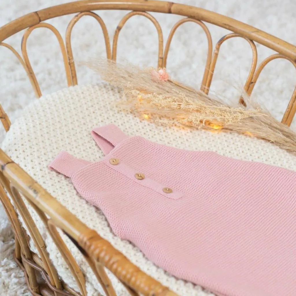 L’indispensable de l’été pour bébé : la Salopette en maille Rose légère de Trois Kilos Sept