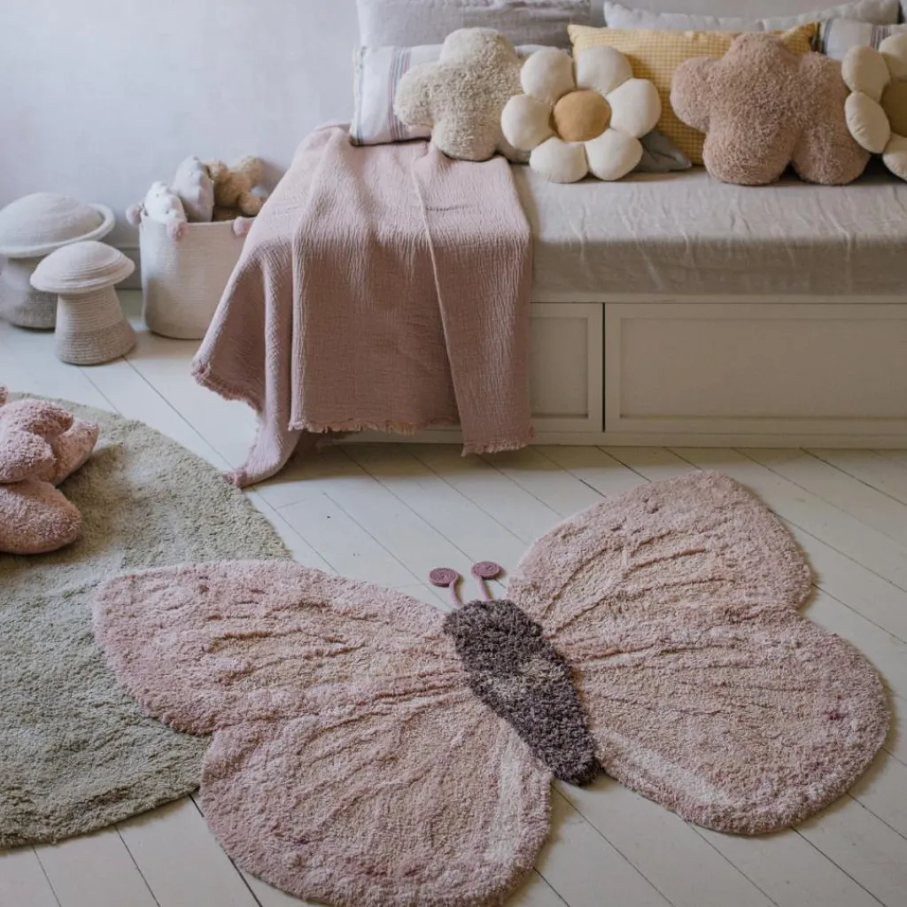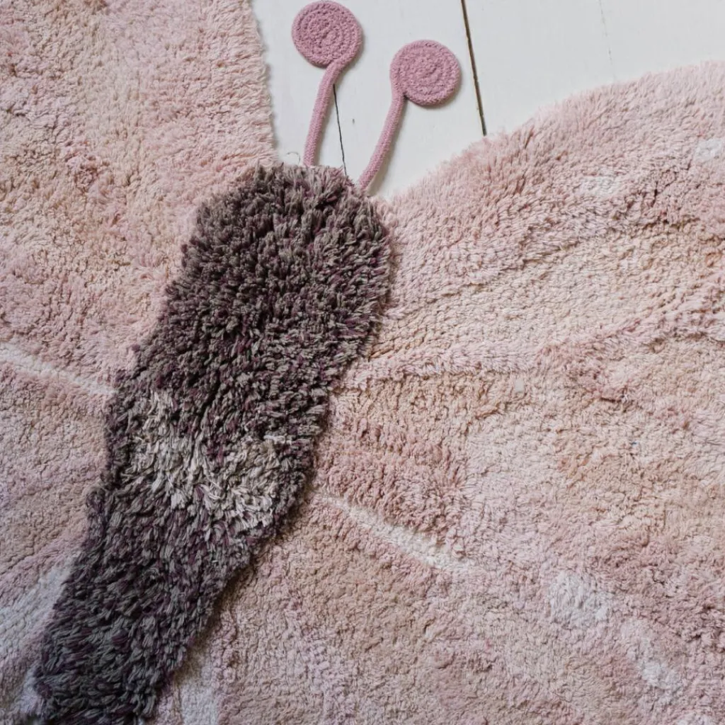 Ce charmant tapis en forme de papillon est fabriqué à la main avec du coton doux et est facile à laver à la maison. Il regorge de petits détails magnifiques, dont une palette de huit nuances de rose différentes qui se mélangent pour créer un papillon réaliste et une antenne soigneusement fabriquée à la main avec un cordon en coton qui peut facilement être retiré du tapis avant le lavage. Un choix parfait pour n’importe quelle chambre d’enfant.