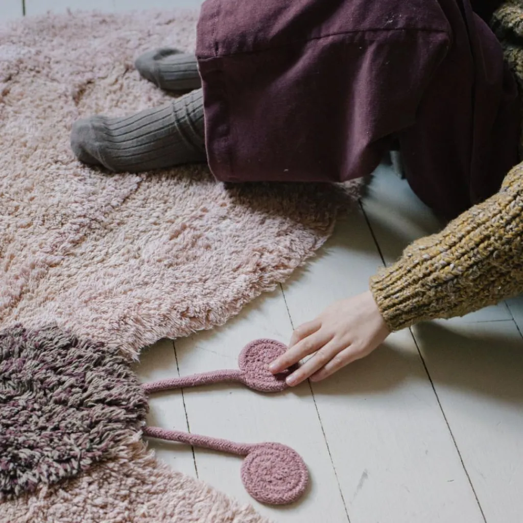 – Les antennes rose foncé sont soigneusement fabriquées à la main avec un cordon en coton et peuvent être facilement retirées du tapis avant le lavage.