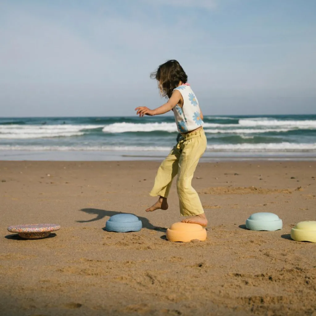 Les six couleurs pastel de Stapelstein Originals sont complétées par le Stapelstein Board super confetti pastel, qui convient particulièrement bien aux jeux d’équilibre et aux exercices d’équilibre. Danse sur l’arc-en-ciel pastel et apporte de la légèreté dans ta vie.