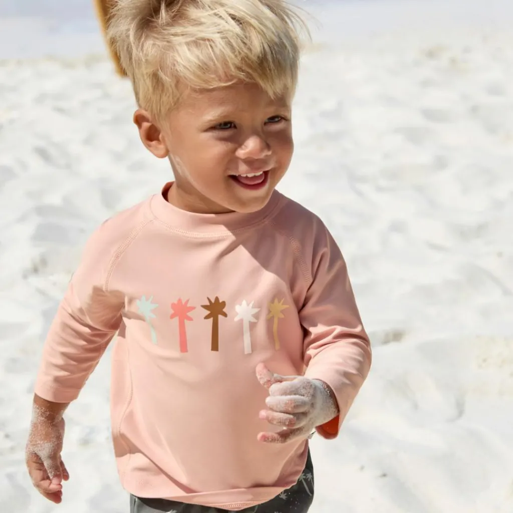 – Avis aux petits surfeurs ! En t-shirt de bains à manches longues avec un indice de protection UV 60, plus rien n’empêche la prochaine baignade à la plage ou à la piscine.