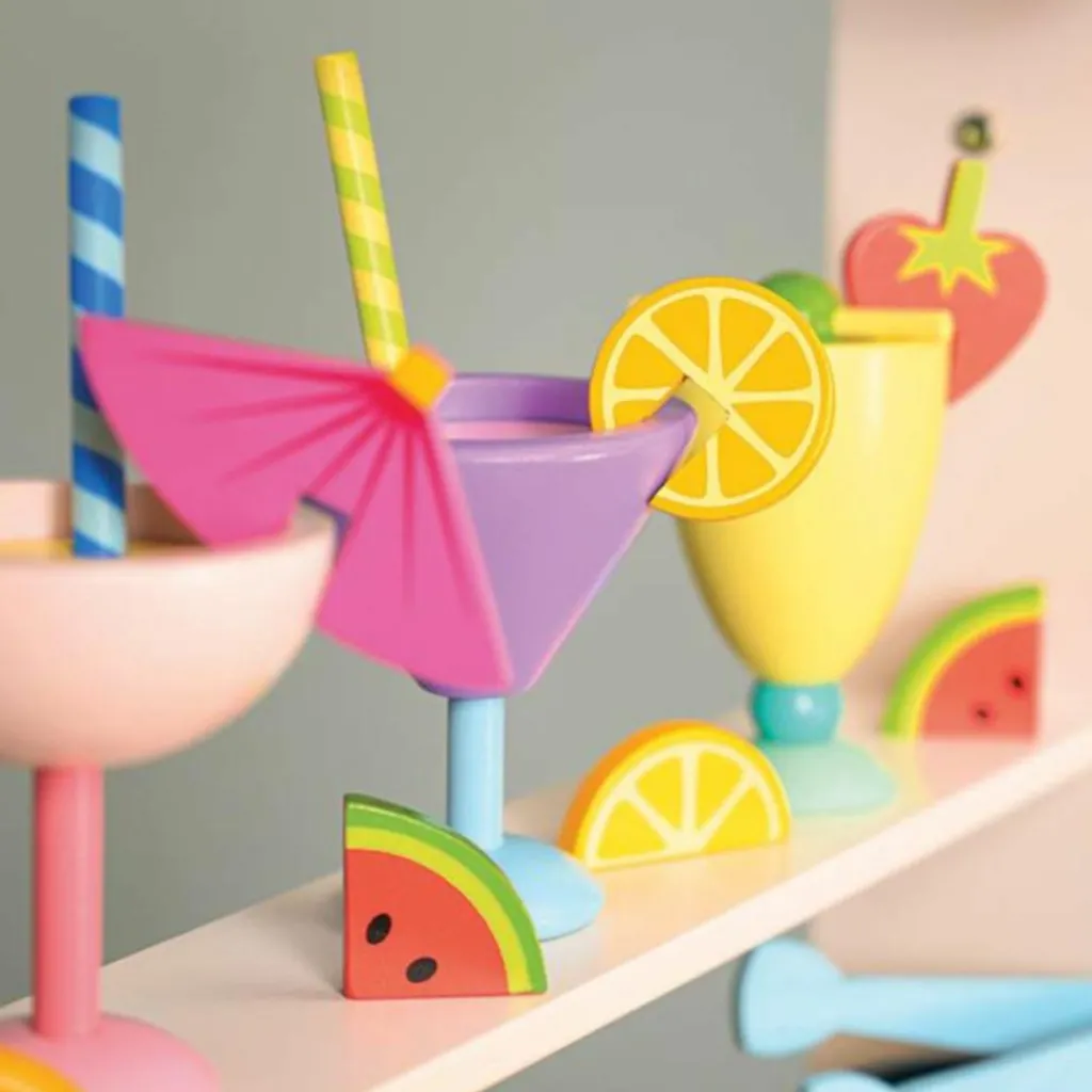 – Un jeu de rôle réaliste : Servez vos créations dans l’un des 3 verres en bois colorés et agrémentez-les d’un parapluie, d’un fruit coupé ou d’une paille rayée.