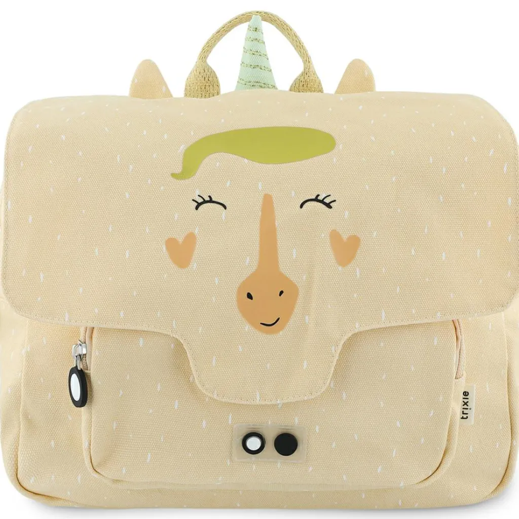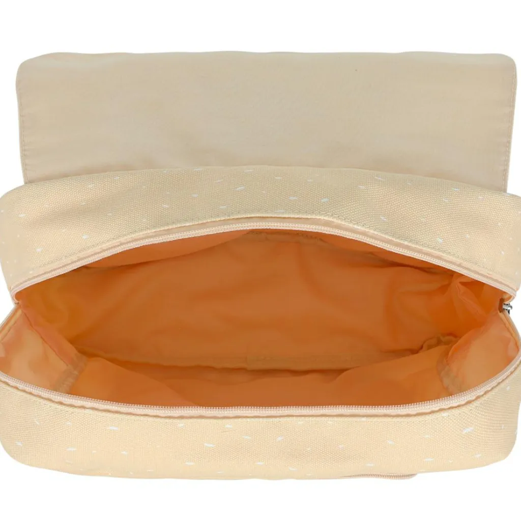 – Fermeture zippée + rabat en tissu.